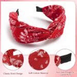 Bandana Headbands for Women | Red Hair Band for Girls with Cross Twist Knot | Wide Non-Slip Boho Paisley Headband for Fashion, Workout, and Travel