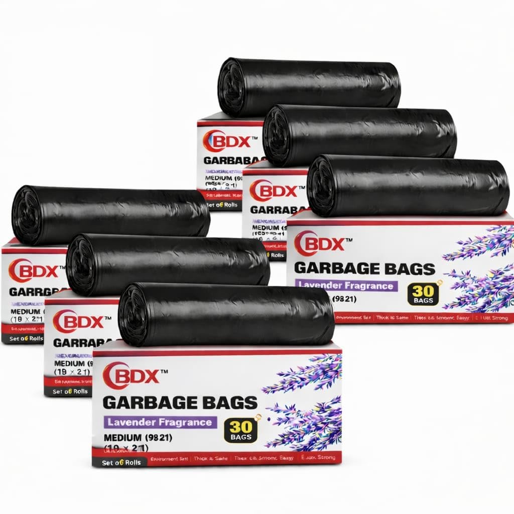BDX Garbage Bags With lavender fragrance| Medium | 180 Count | 30 Bags X 6 Rolls | 19 X 21 Inches For waste
