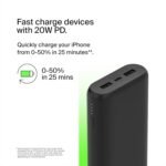 Belkin 20000 mAh 20W Power Bank | Super Fast Charging | USB-C PD Port | Fast Charging for iPhone 17, Air, Pro, Pro Max, AirPods, Samsung Galaxy S25, Google Pixel 10 & More | 2 Years Warranty | Black
