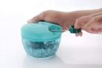 This vegetable chopper comes with 3 sharp stainless steel blade places in different position to cover the entire height of the chopper, and manage to chop very easily in seconds.