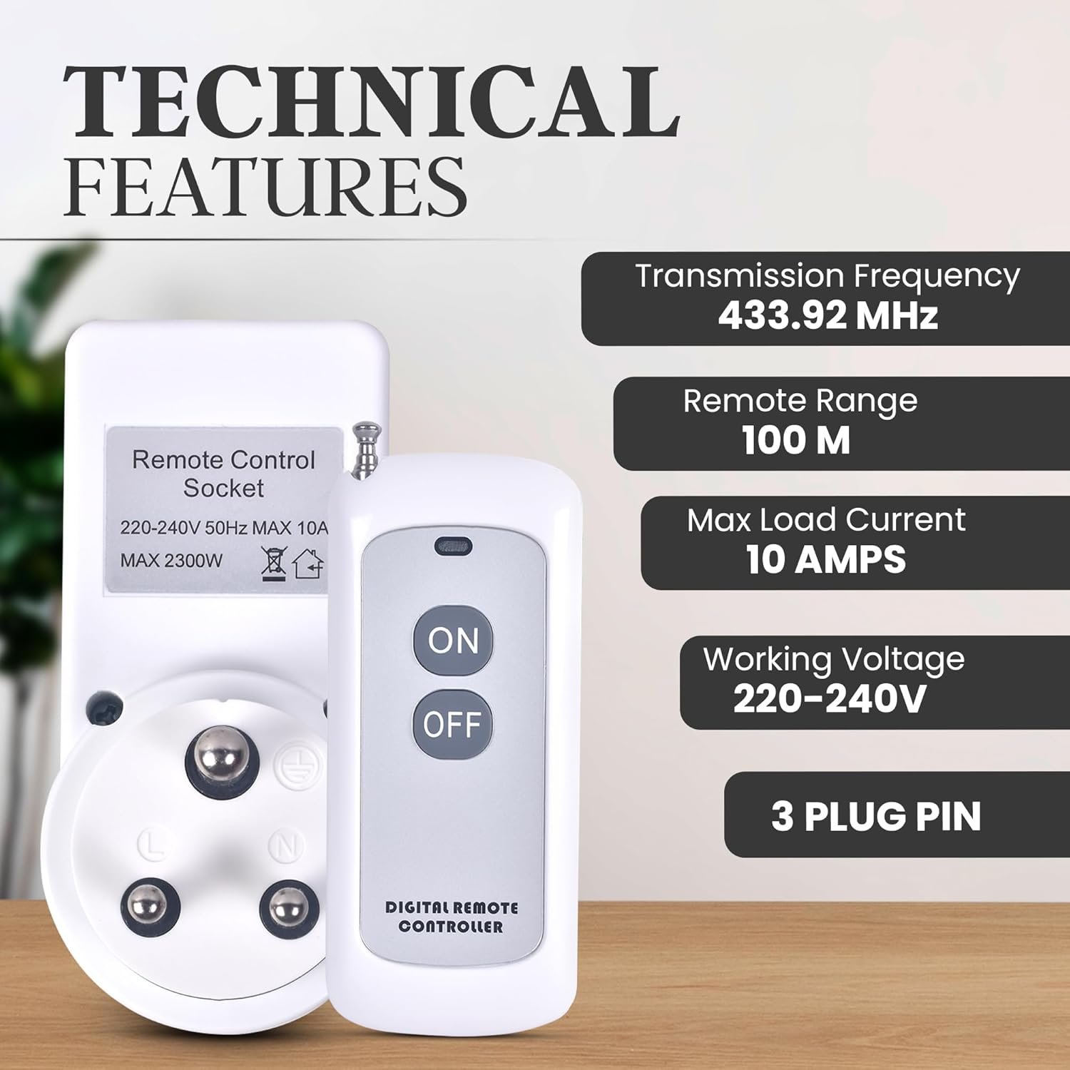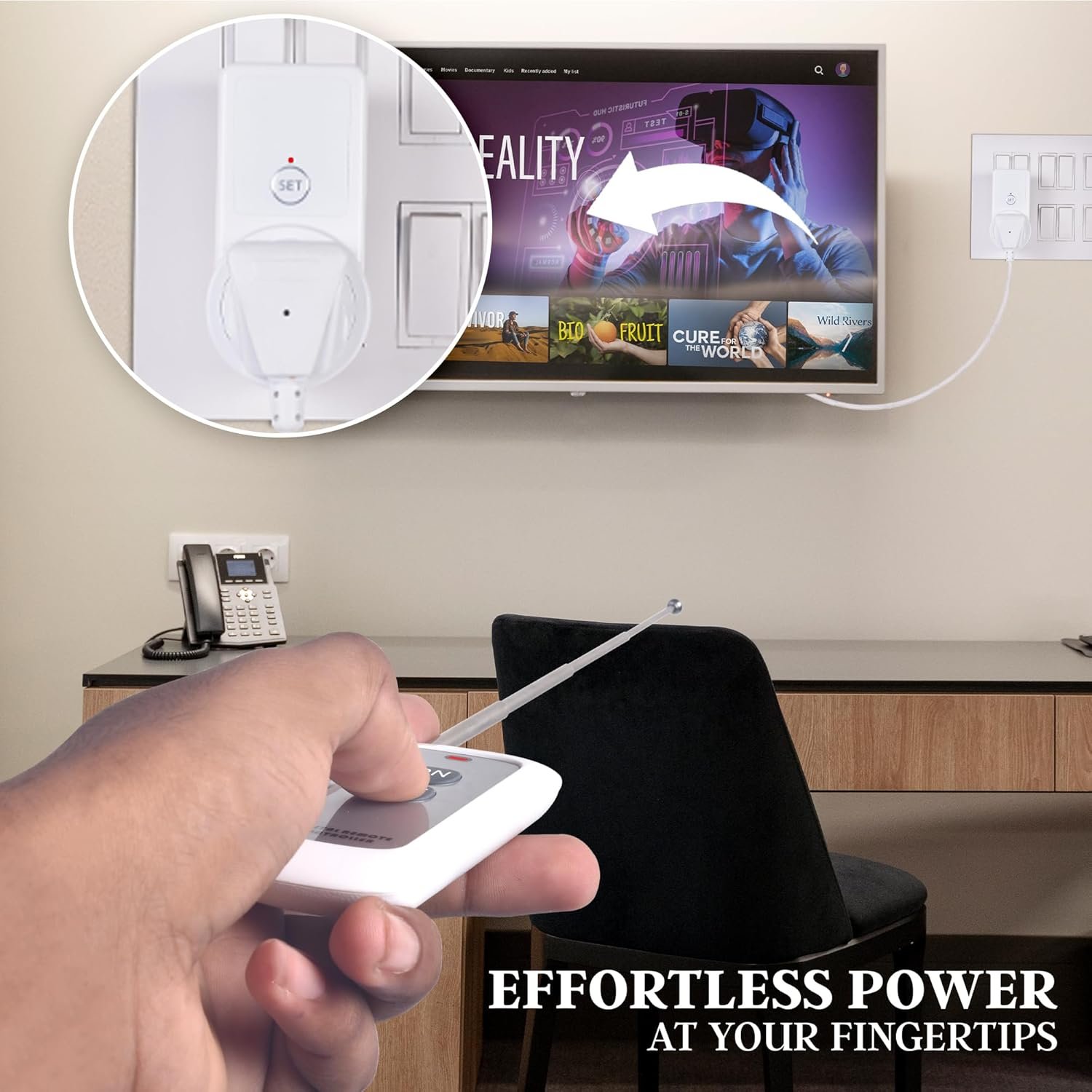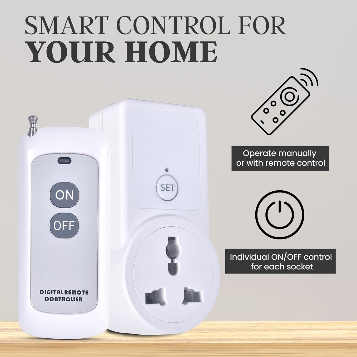 No wiring, no tools, no electrician required. Simply plug the BT16H into your existing wall socket, connect your appliance, and start using the remote instantly. The compact design fits comfortably in standard Indian 3-pin sockets without blocking surrounding outlets. With 2 wireless sockets and 1 remote, you get flexibility to control multiple appliances independently.