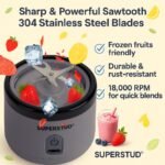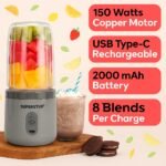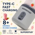 The SUPERSTUD Blender Mixer Grinder is compact, portable, and easy to use. Perfect for quick smoothies and juices with two jars. Rechargeable, lightweight, and auto-stop feature makes it safe and convenient.