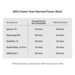 The boAt Energyshroom PB435 20000 mAh Power Bank delivers reliable performance with fast and efficient charging. The 35W output charges smartphones and tablets quickly, and the multiple output ports make it convenient to power more than one device at a time. The build feels solid and premium, and the compact design makes it easy to carry despite the large capacity. Overall, it’s a dependable power bank for daily use, travel, and emergencies.