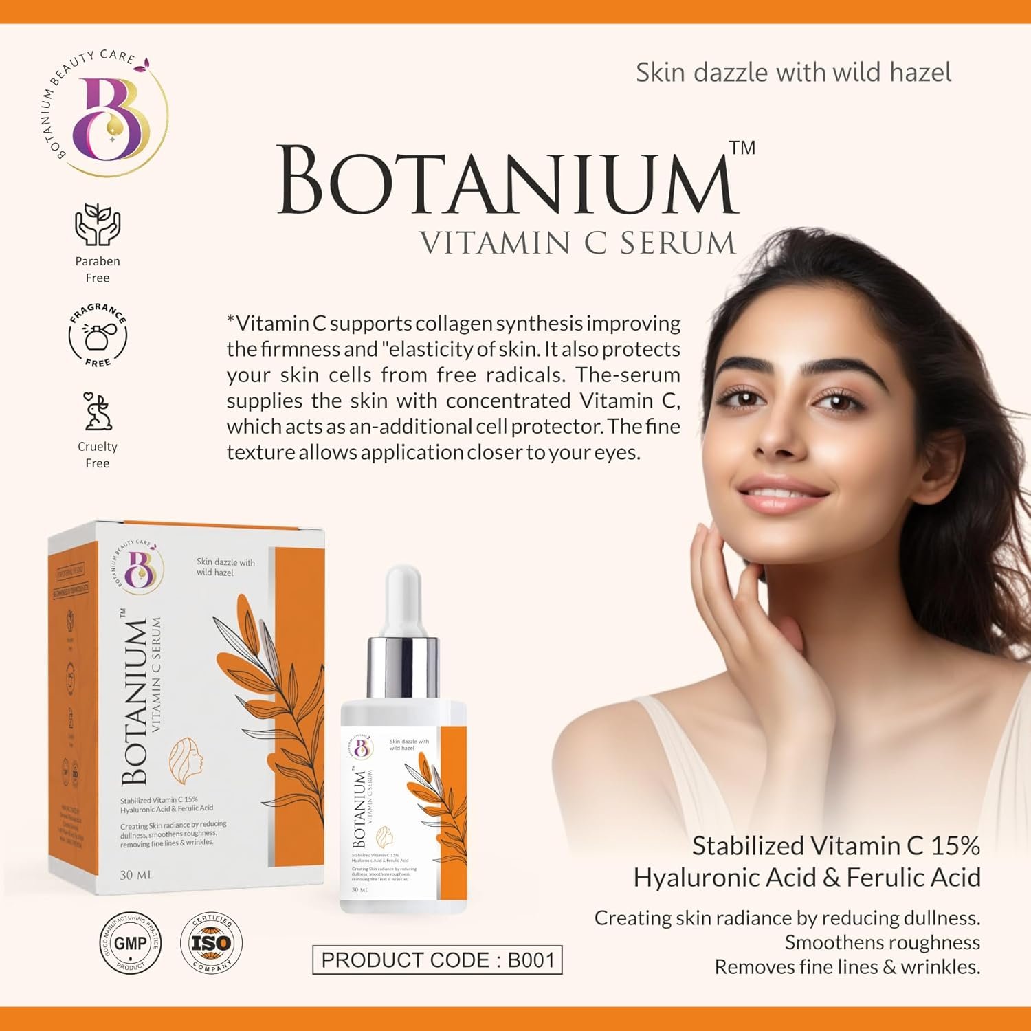 Botanium 15% Vitamin C Serum with Hyaluronic Acid & Ferulic Acid | Targets Dull & Uneven Skin | 30ml Face Serum For Men and Women | Removing Fine Lines & Wrinkles | Fragrance Free