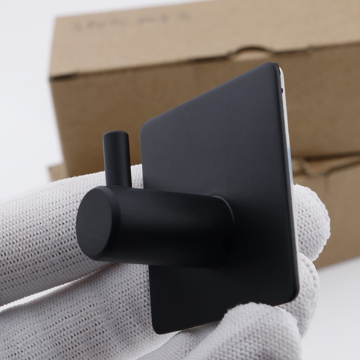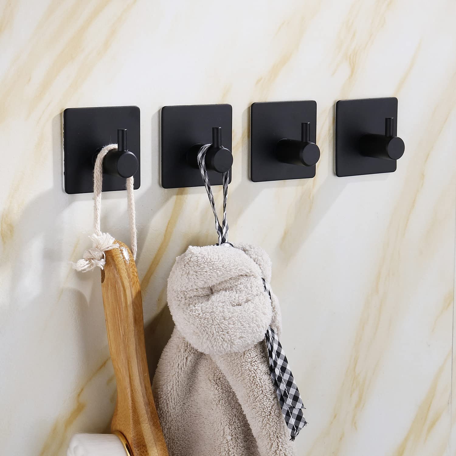 BustleDust 4 Packs Adhesive Hooks, Heavy Duty Stainless Solid Steel Black Wall Hooks Towel Hooks for Bathrooms, Kitchen,Cabinet, Doors, Office, Waterproof Rustproof Oil Proof (Black 4 Pack,Square)