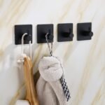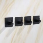 5 reviews for BustleDust 4 Packs Adhesive Hooks, Heavy Duty Stainless Solid Steel Black Wall Hooks Towel Hooks for Bathrooms, Kitchen,Cabinet, Doors, Office, Waterproof Rustproof Oil Proof (Black 4 Pack,Square)