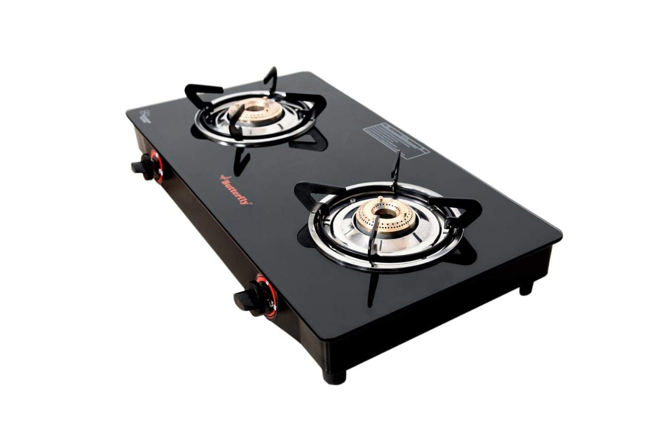 Butterfly Smart Glass Top 2 Burner Open Gas Stove (Black) Cooking becomes easy when you have butterfly glass top gas stoves in your kitchen. It helps you to cook more than one dish at the same time in an efficient manner. Butterfly brings to you an elegant gas stove with toughened glass top with shatter-proof. It adds charm to your kitchen. 360 degree revolving nozzle and easy-to-use design makes it ideal for all types of house holds. The burner stands are designed to be spill-proof, so you don’t have to worry about your vessels toppling over. The knobs are ergonomically designed for ease-of-use. Moreover, they are engineered to avoid leakage of gas to give you safe and efficient cooking experience. The compact design of the stove saves you a lot of counter-top space. Butterfly gas stoves are very easy to clean and maintain on a regular basis. Gas Inlet Nozzle – Multi Directional. Butterfly Curve Stainless Steel Pressure Cooker, 3 Litre Stainless steel cooker with aluminum thermal base. Induction stove compatible, unique curved shape provides extra space at the bottom of the body enables better stirring of food. 5 years warranty.