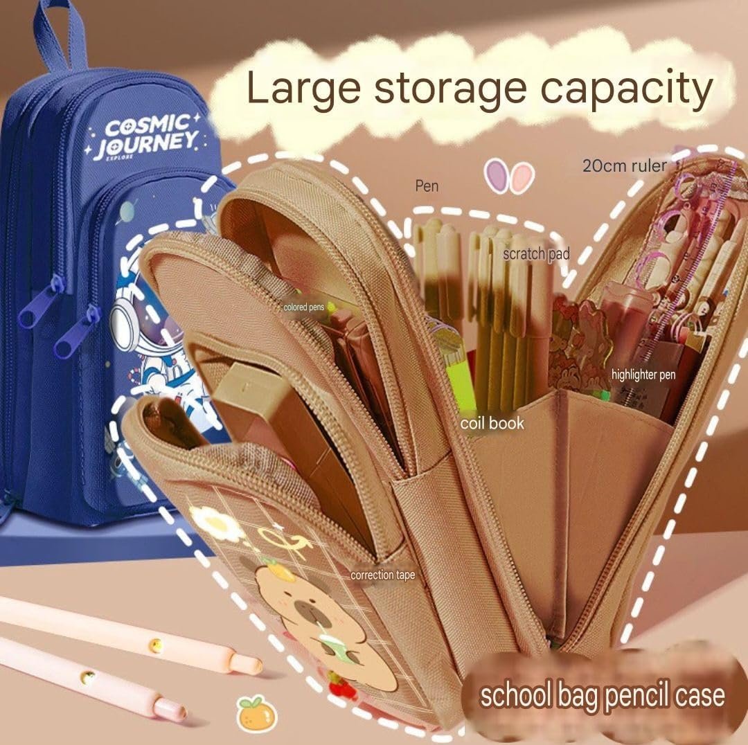 Designed with 6 layers, 3 compartments, dedicated pen slots, and a spacious main section, this astronaut pencil case keeps everything neatly arranged from pens, pencils, markers, and highlighters to sticky notes, scissors, erasers, and more. No more clutter every item has its own place!