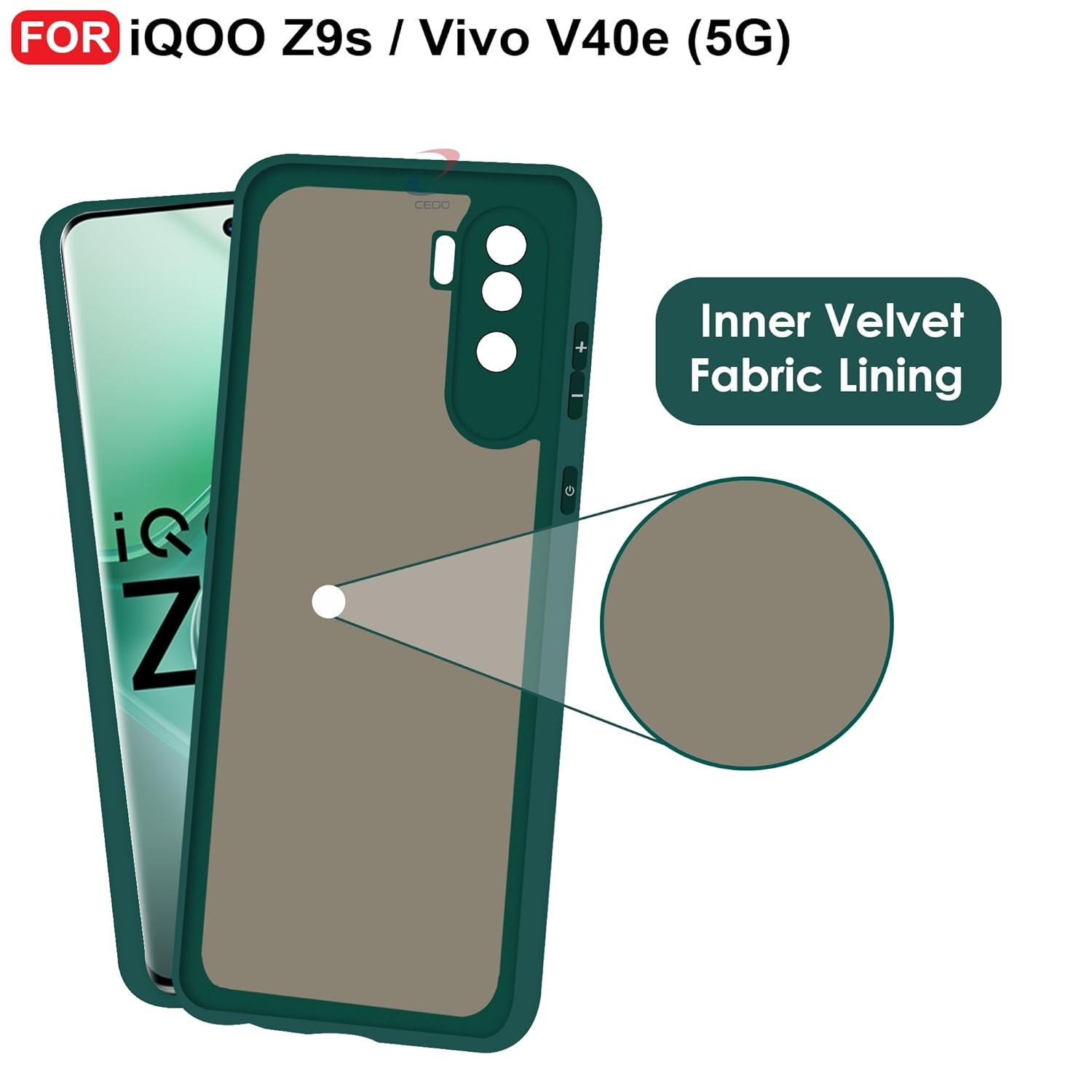 CEDO iQOO Z9s / Vivo V40e (5G) Back Cover | Camera Bump Protection & Inner Velvet Fabric Lining | Ultra Slim Matte Soft Rubberised Case Cover (Green)