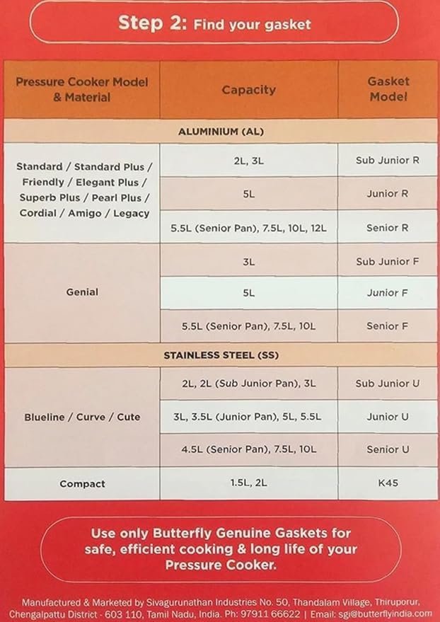 Specially designed gasket for Butterfly Sub Junior U pressure cooker models