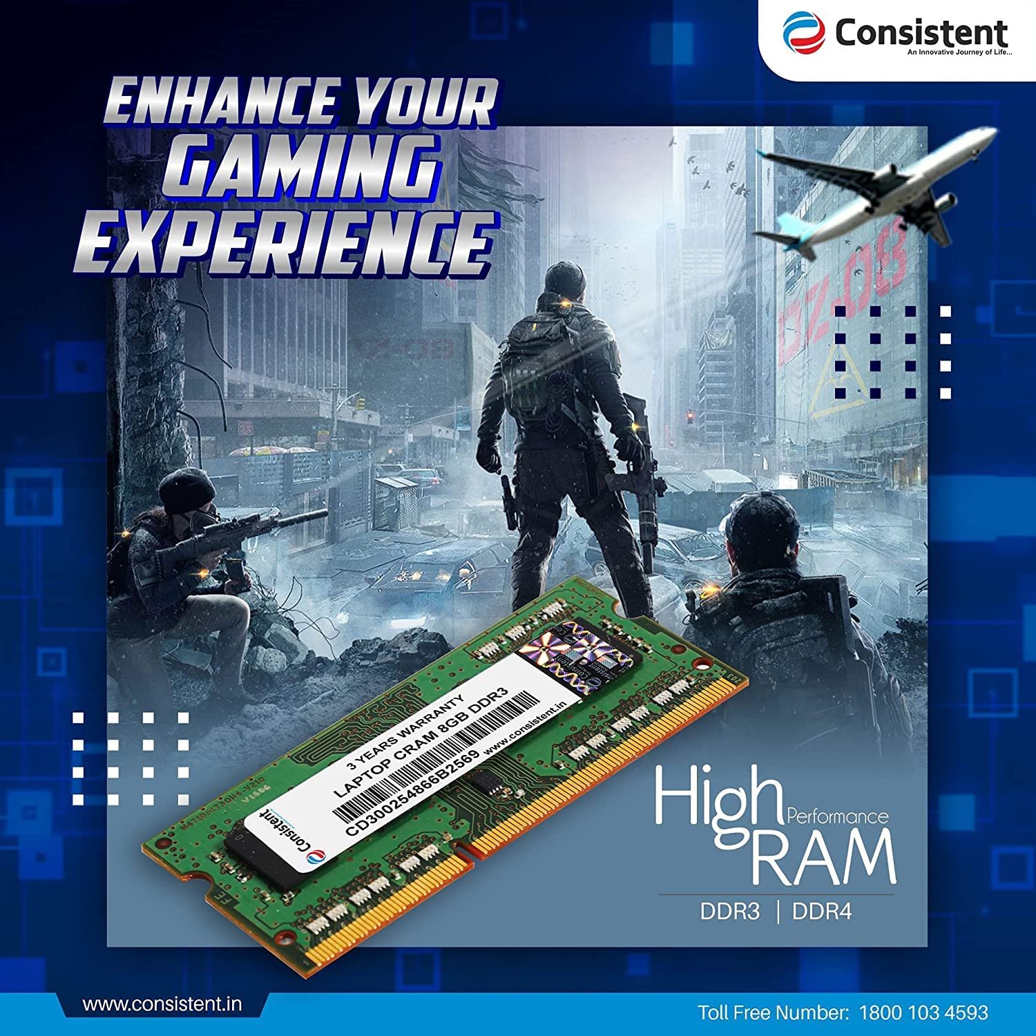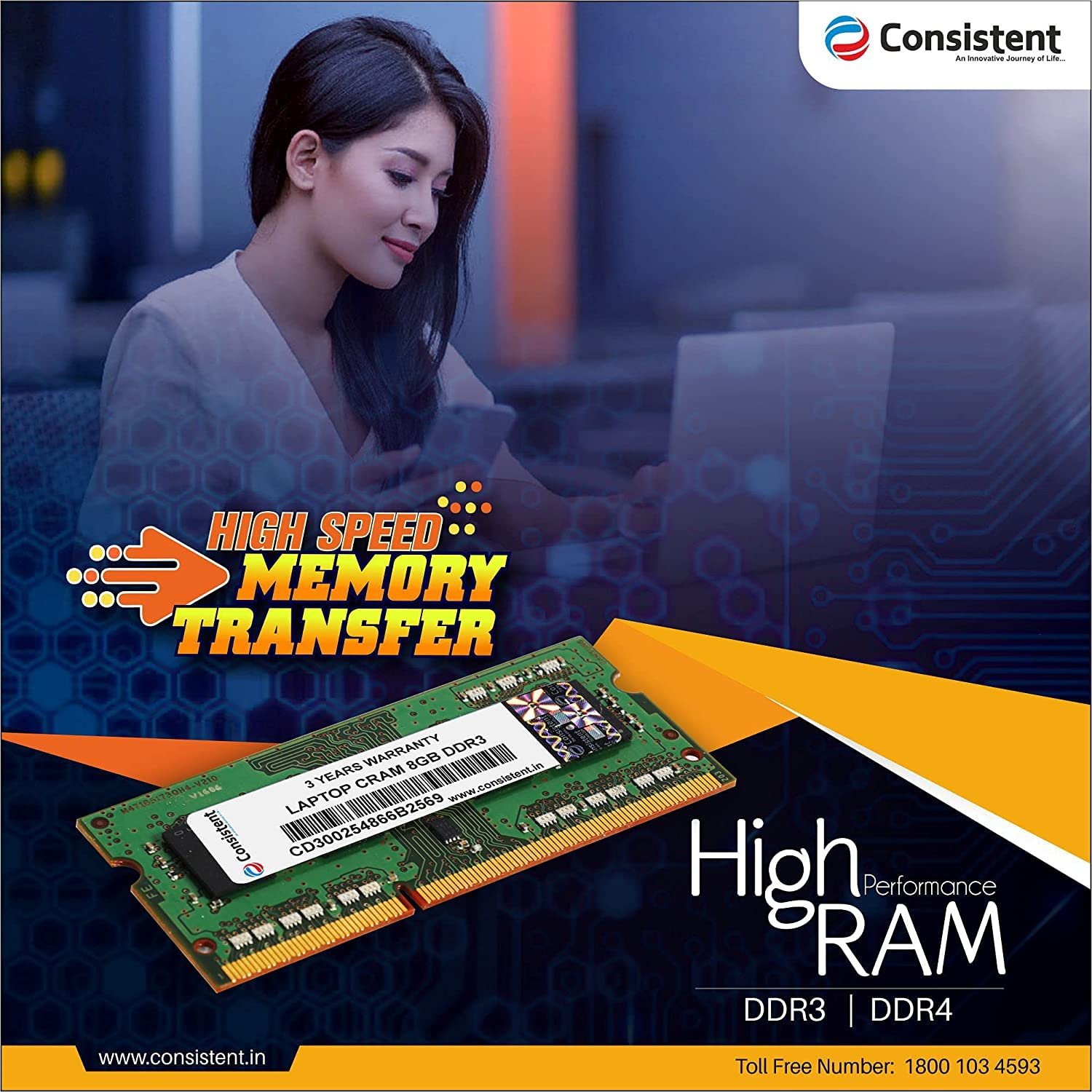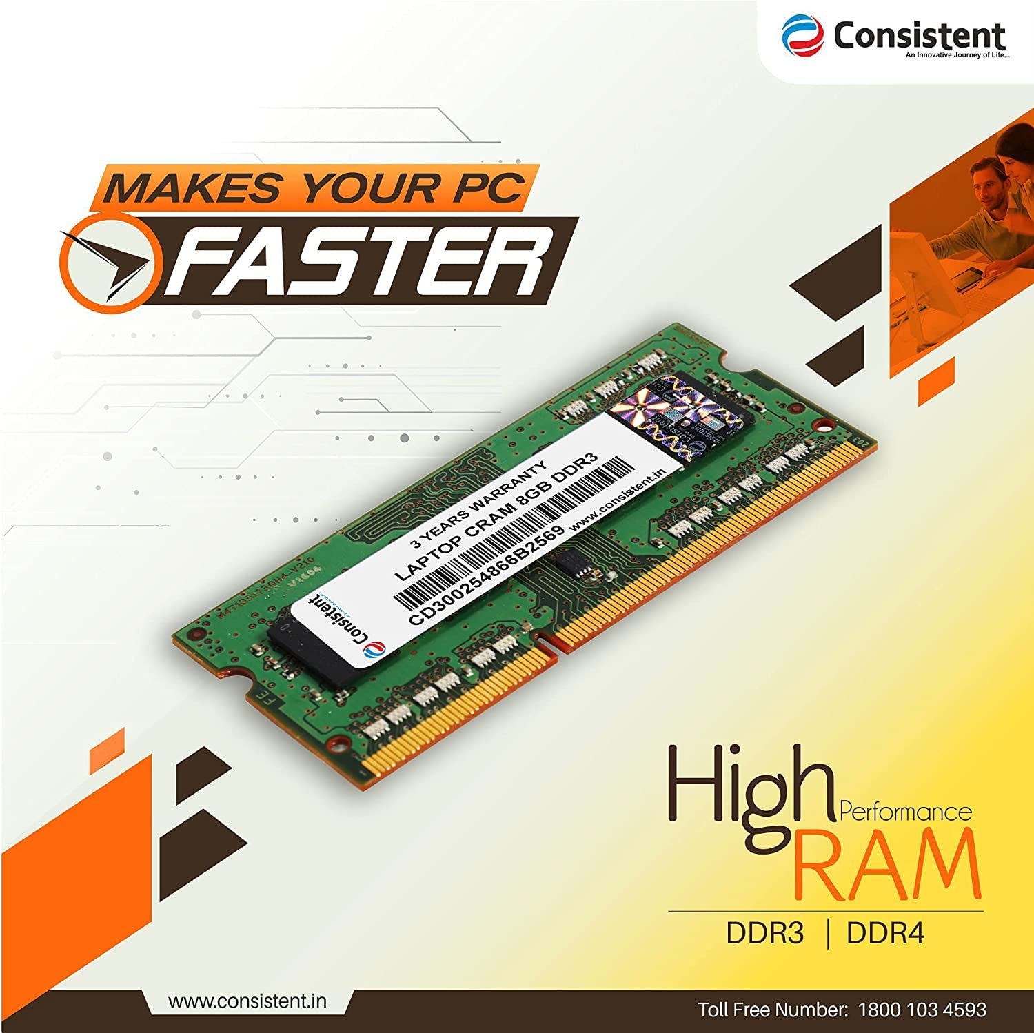 8 reviews for Consistent 8 GB DDR3 1600 MHz Speed Laptop RAM (Single Channel-12800 Series) with 3 Years Replacement Warranty from Manufacturer