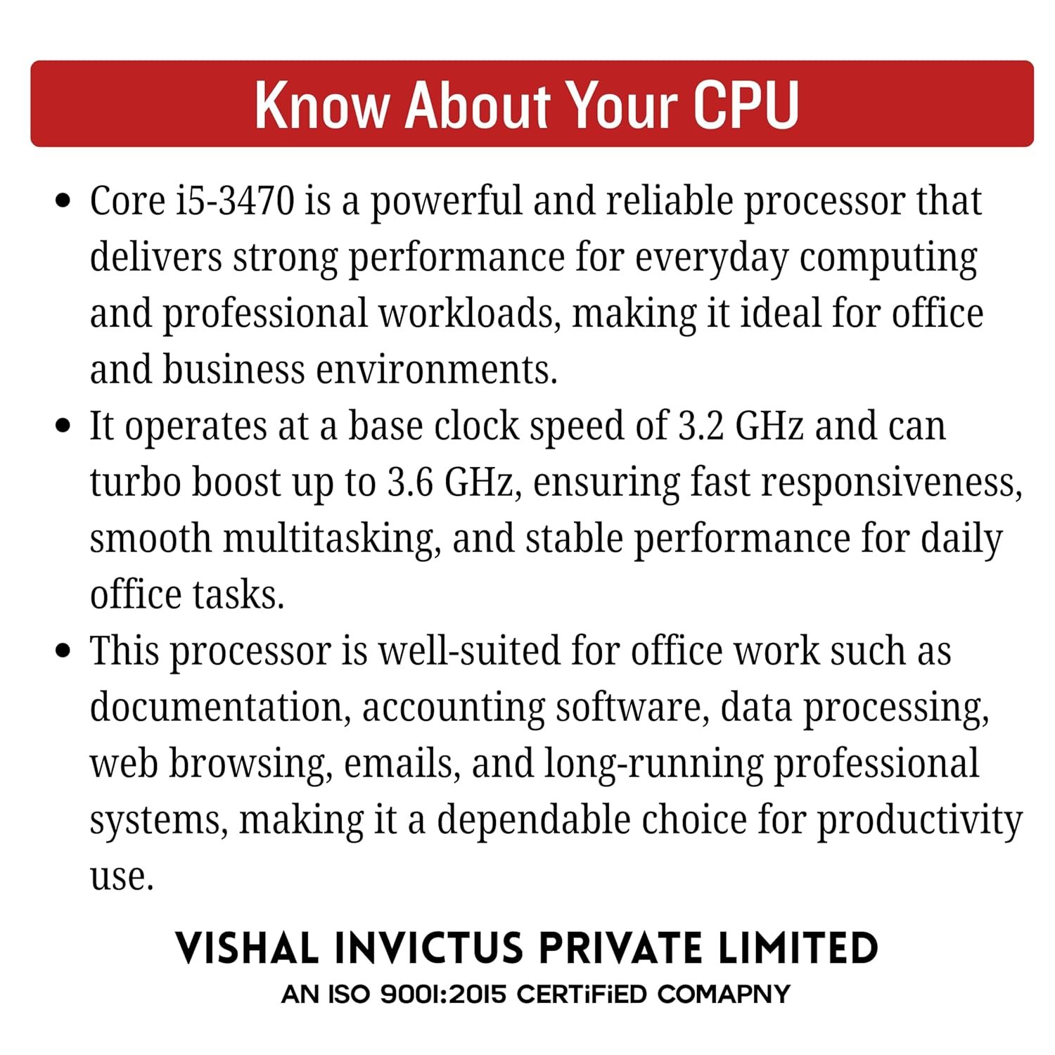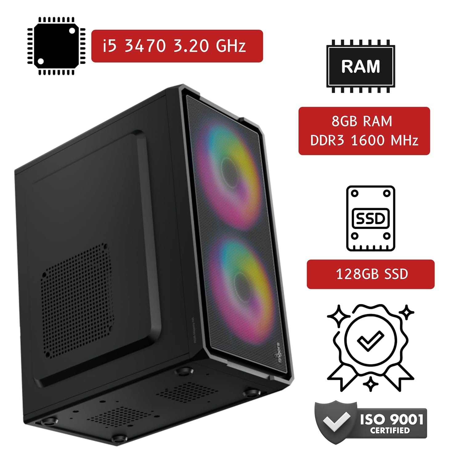 Core i5 Desktop PC – Core i5-3470 Upto 3.60GHz | 8GB RAM | 128GB SSD | HDMI & VGA | Ethernet | HD Graphics | USB 3.0 | WiFi + Bluetooth | Windows 11 Pro | MS Office 2021 | 2 Years Warranty