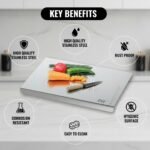 ✔ Premium 1mm Thick Stainless Steel – Heavy Duty Performance Made from high-quality food-grade stainless steel, this 1mm thick metal cutting board is built for durability and long-lasting use. It resists bending, warping, cracking, rust, and corrosion — making it stronger than traditional wooden and plastic chopping boards.