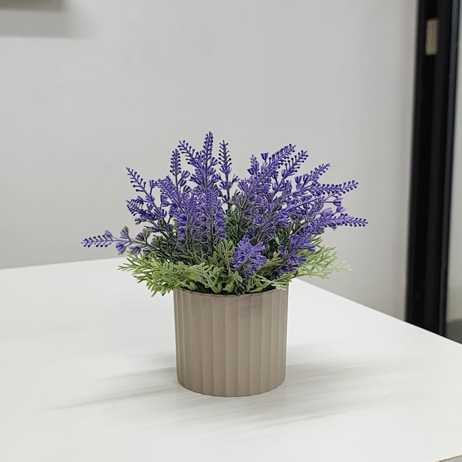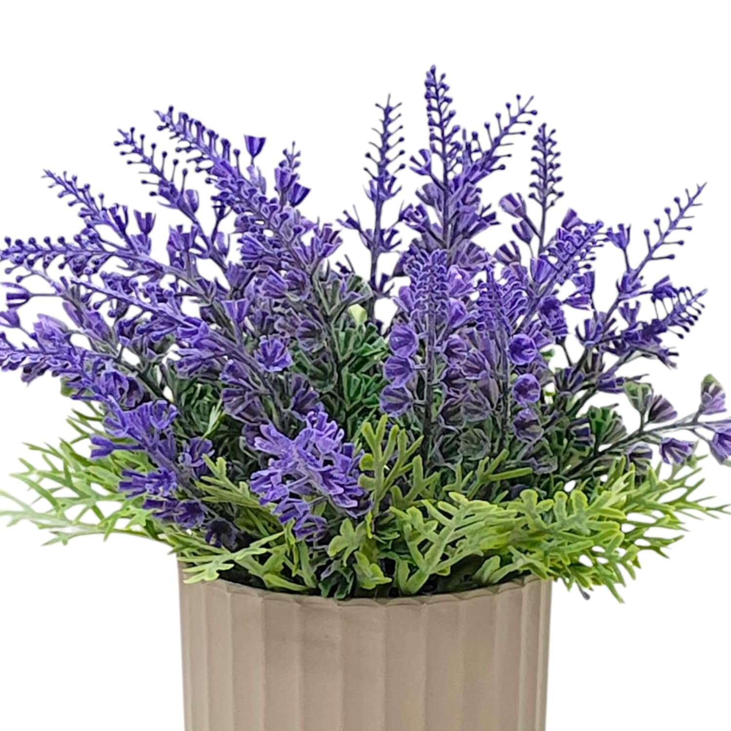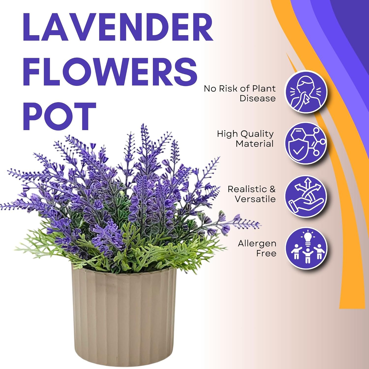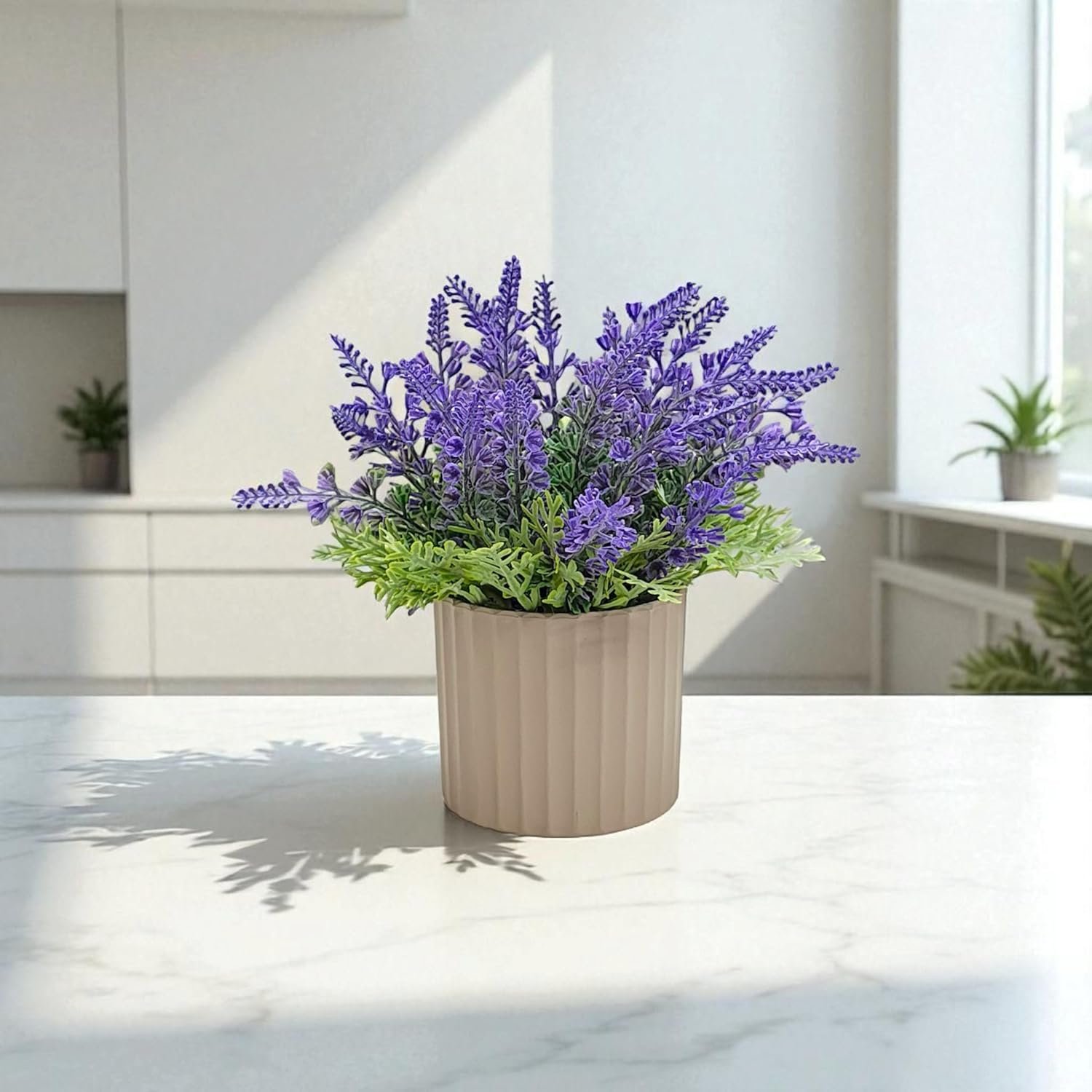 DECORATIVE POT: Comes in a stylish contemporary planter that complements the artificial lavender and suits various interior design styles