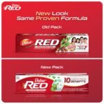 DABUR RED PASTE has a clinically proven formula that fights against 7 DENTAL PROBLEMS 1) TOOTHACHE, 2)CAVITIES, 3) plaque, 4) germs, 5) bad breath, 6) yellowing, and 7) bleeding gums