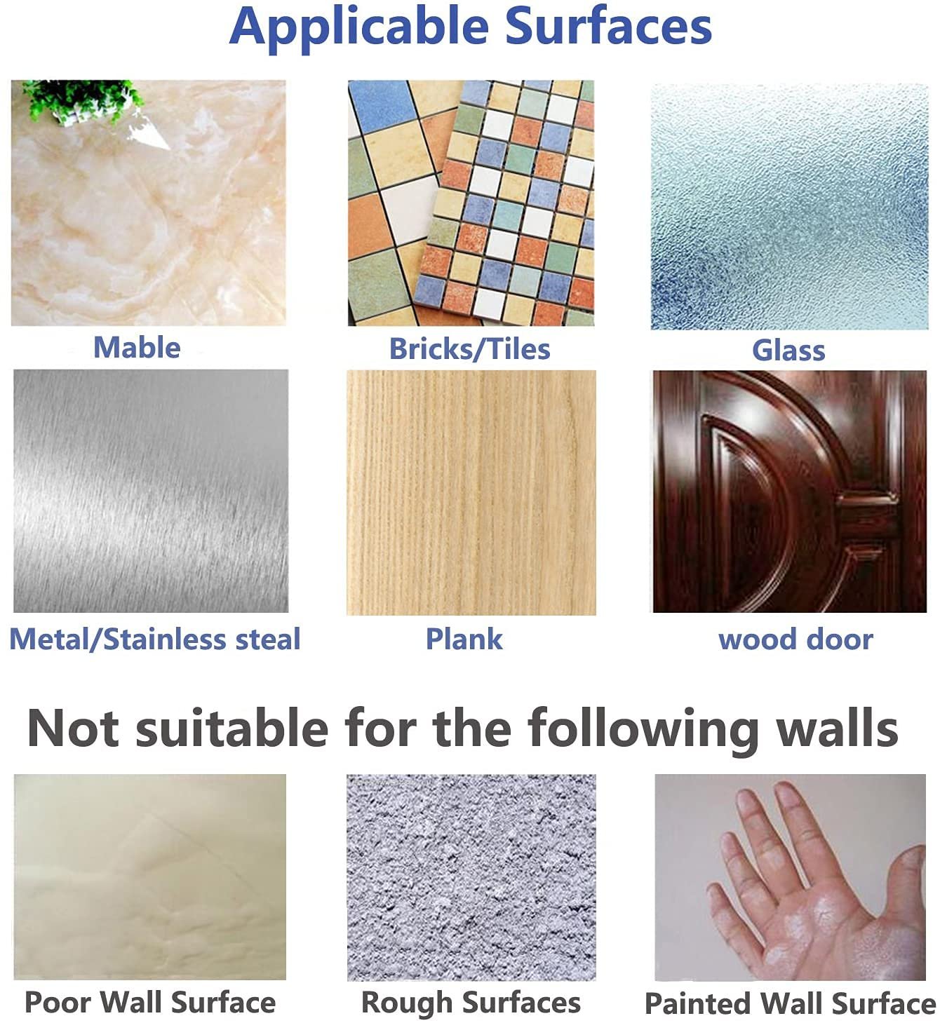 The adhesive comes off after some time on certain surfaces like painted wallsExcellent saldhesive on tiled surfaces