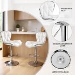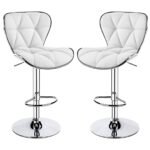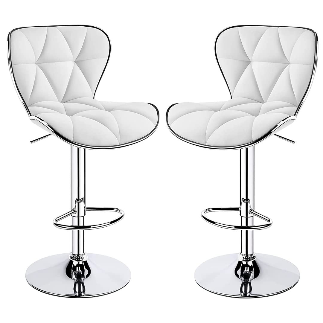 Decor & More Bar Stool | Modern Height Adjustable Bar Chairs for Home | 360 Degree Swivel Seat Top | Bar Chair for Home Kitchen with Footrest |Bar Stools Set of 2 (Metal) – White