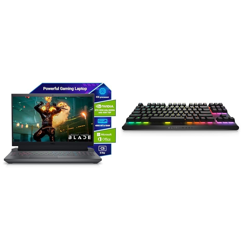 Dell Gaming G15-5530, Laptop, Intel i5-13450HX/16GB/512GB SSD/NVIDIA RTX 3050, 6GB GDDR6/15.6″ FHD/Backlit KB 4-Zone RGB/Dark Shadow Gray + Alienware Tenkeyless Gaming KB-AW420K-Dark Side of The Moon