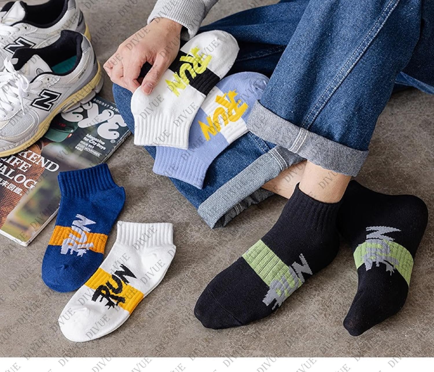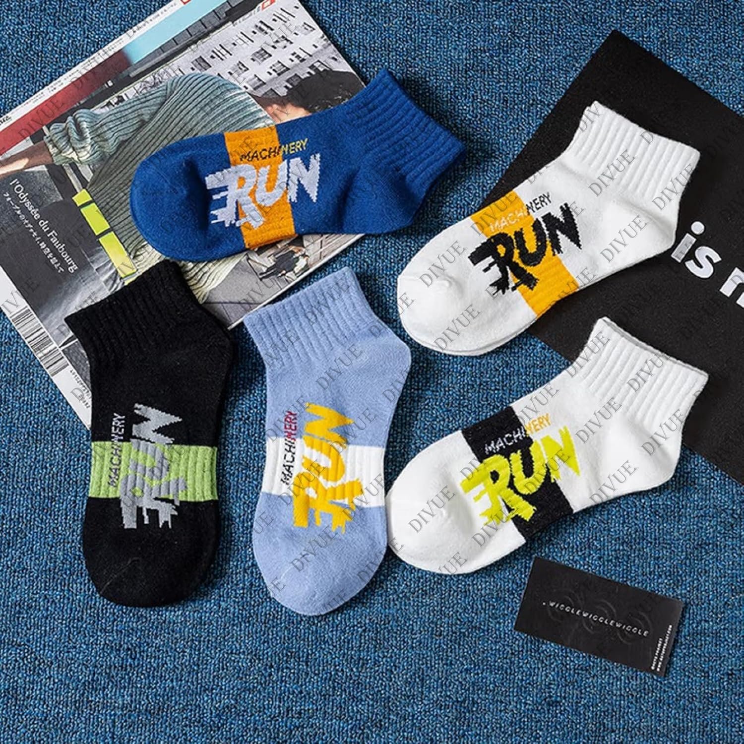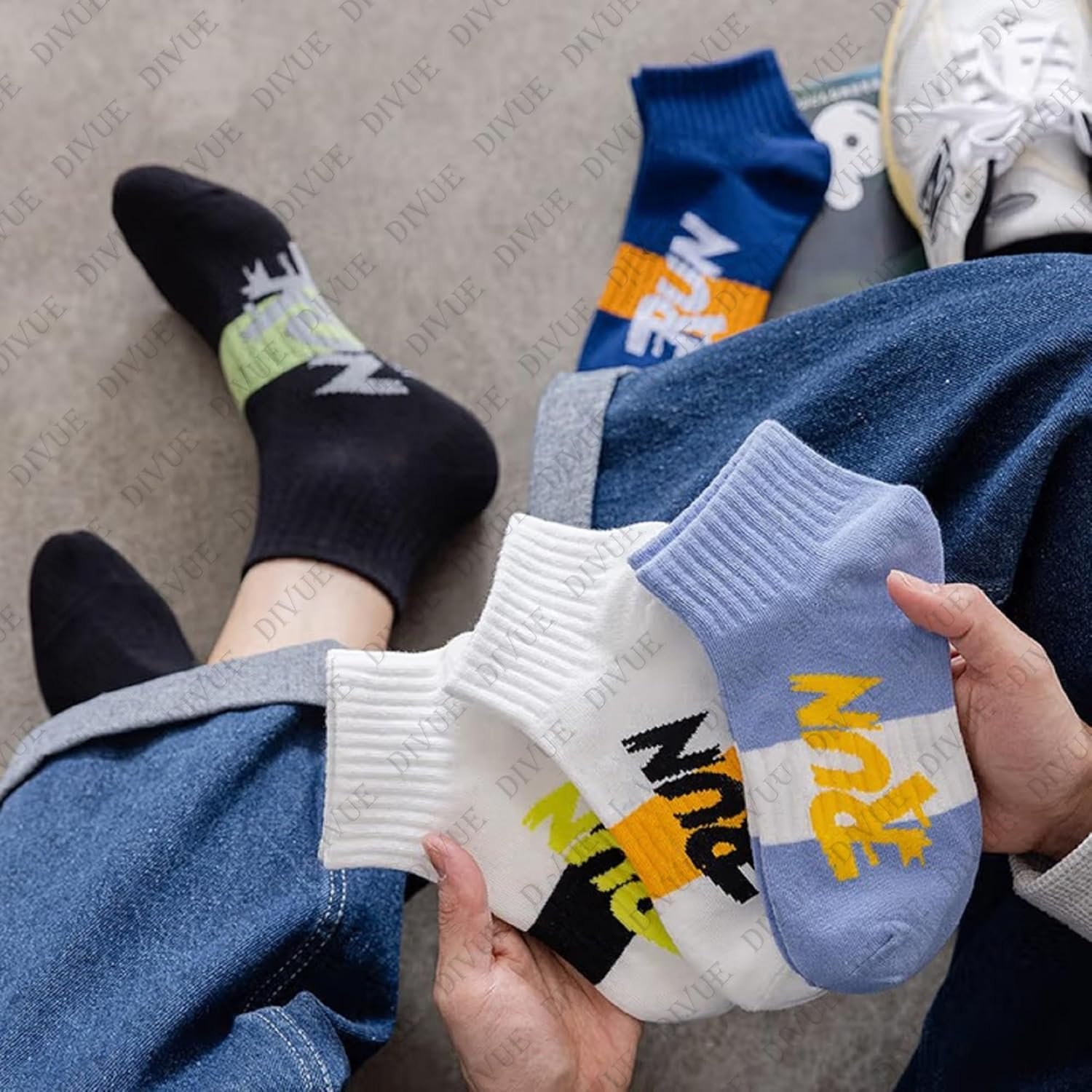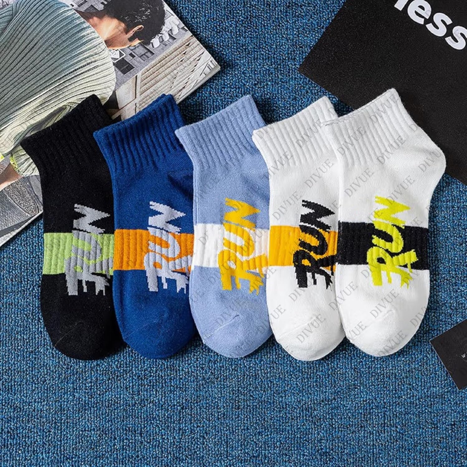 DIVUE focuses on creating comfortable, stylish, and durable socks that suit everyday needs. With breathable cotton fabric, trendy RUN print design, and strong durability, these socks combine performance and fashion in one pack.