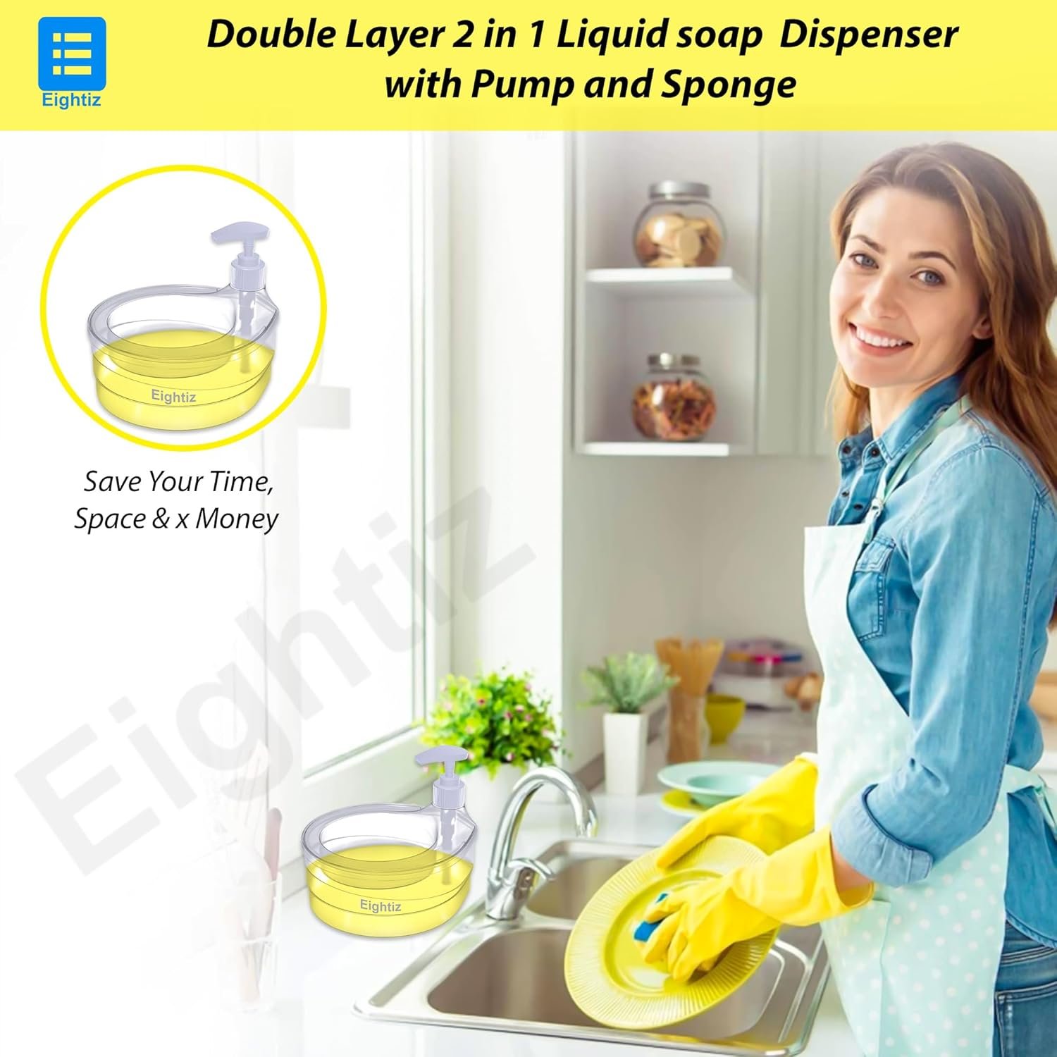 Double Layer Soap Dispenser for Bathroom Accessories Dishwasher Liquid Holder Liquid Dispenser Pump with Sponge Holder Kitchen Sink Accessories Items(Multi Colour)