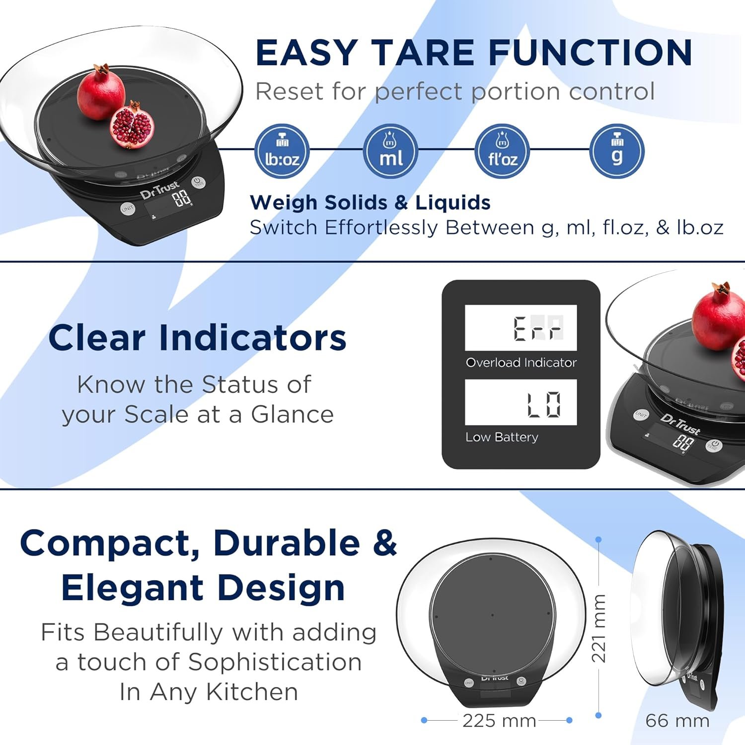 PRECISE MEASUREMENTS FOR HEALTHY COOKING: Measure ingredients with absolute accuracy in grams, milliliters, pounds: ounces, or fluid ounces, making it perfect for baking, cooking, or meal prep. The scale provides a precision of 1g or 0.1oz, supporting weights up to 5kg (11 lbs), ensuring every recipe turns out just right.