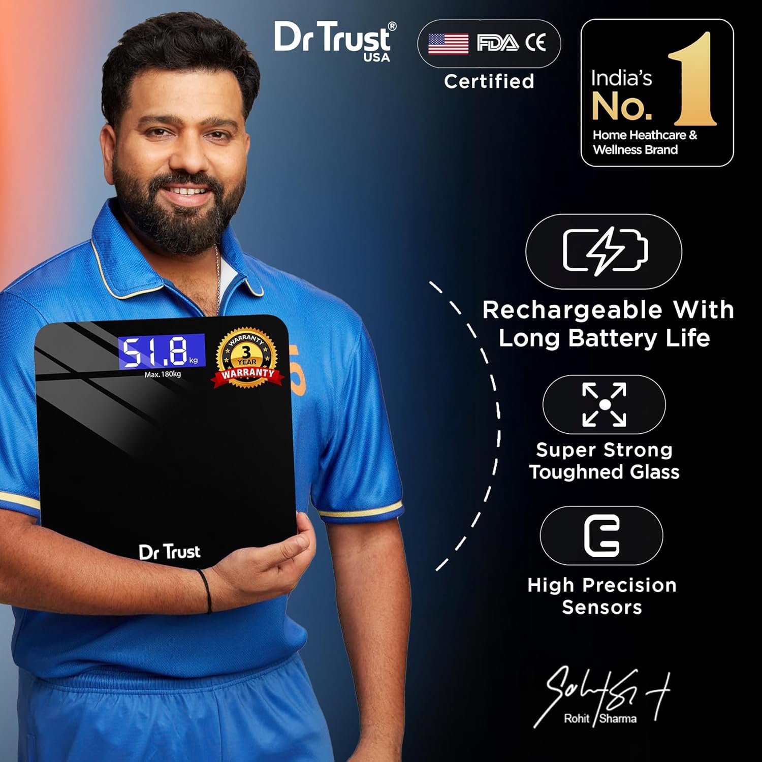 The Dr Trust (USA) Electronic Zen Rechargeable Digital Personal Weighing Scale comes with a 3-year extended Warranty from the invoice generation date for free by registering on the manufacturer’s website within 15 days. The warranty is subject to the terms & conditions. However, breakage, water damage, batteries, and general wear and tear are excluded from the warranty. The warranty covers manufacturing defects in Weighing Scale Sensors Only. Customers must send the Weighing scale to the Dr Trust service centre in India for repair. Please do not attempt to repair the Weighing Scale yourself/unauthorized repairs as this will void the warranty and may cause electric shock.