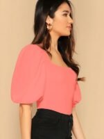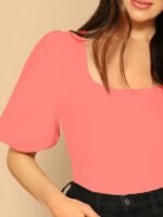 Dream Beauty Fashion Women’s Bishop Puff Sleeves Square Neck Slim Top Polyester Blend (BZF-Top-Eva)