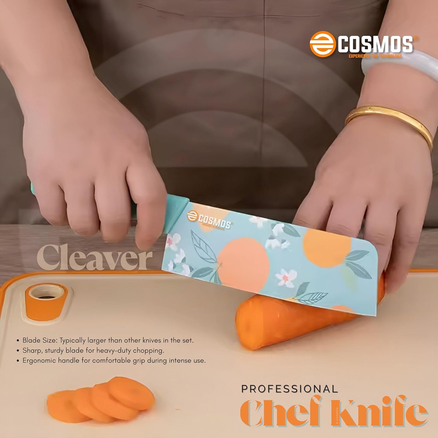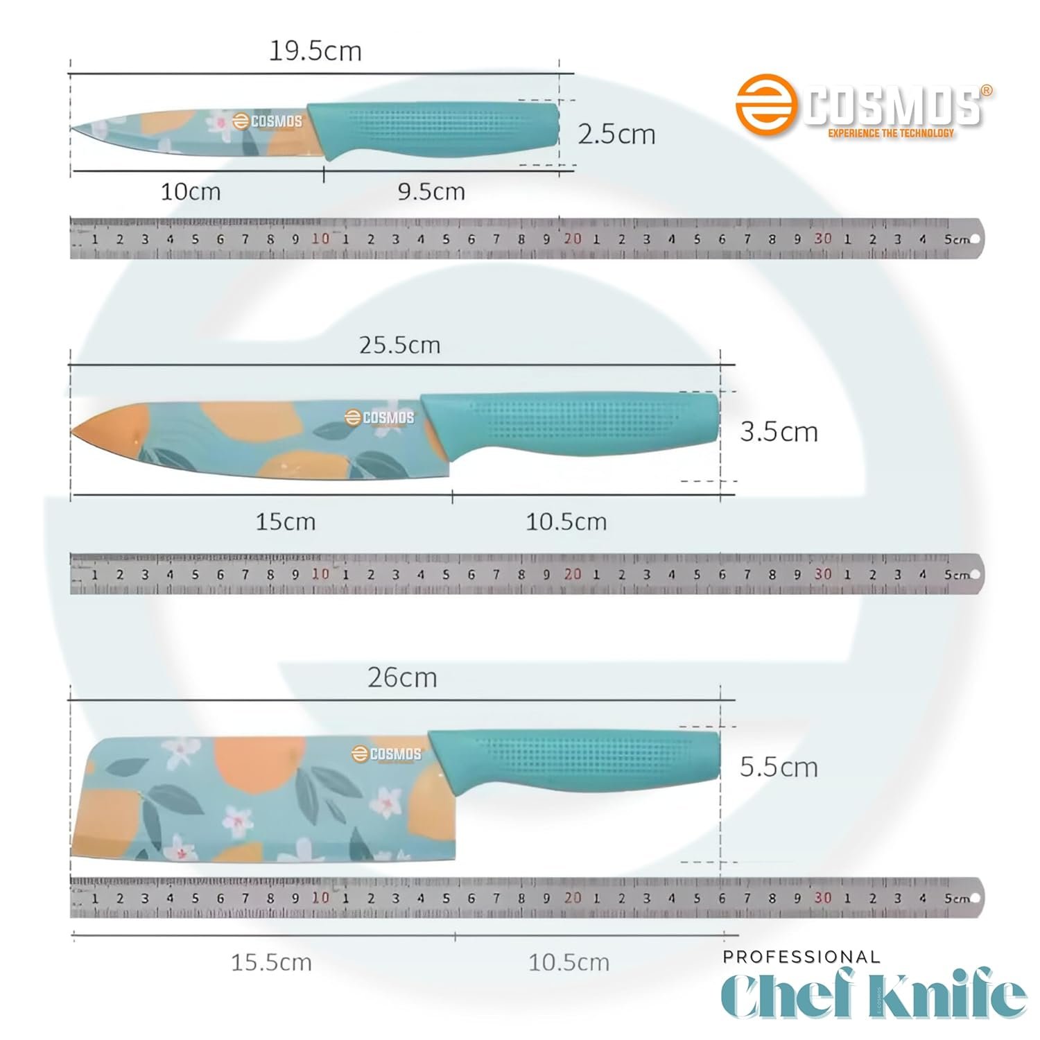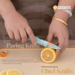 8 reviews for E-COSMOS® Professional 3-Piece Kitchen Knife Set – High Carbon Stainless Steel Chef, Utility & Santoku Knives with Ergonomic Blue Handles (Blue, 3 Pc Knife Set)