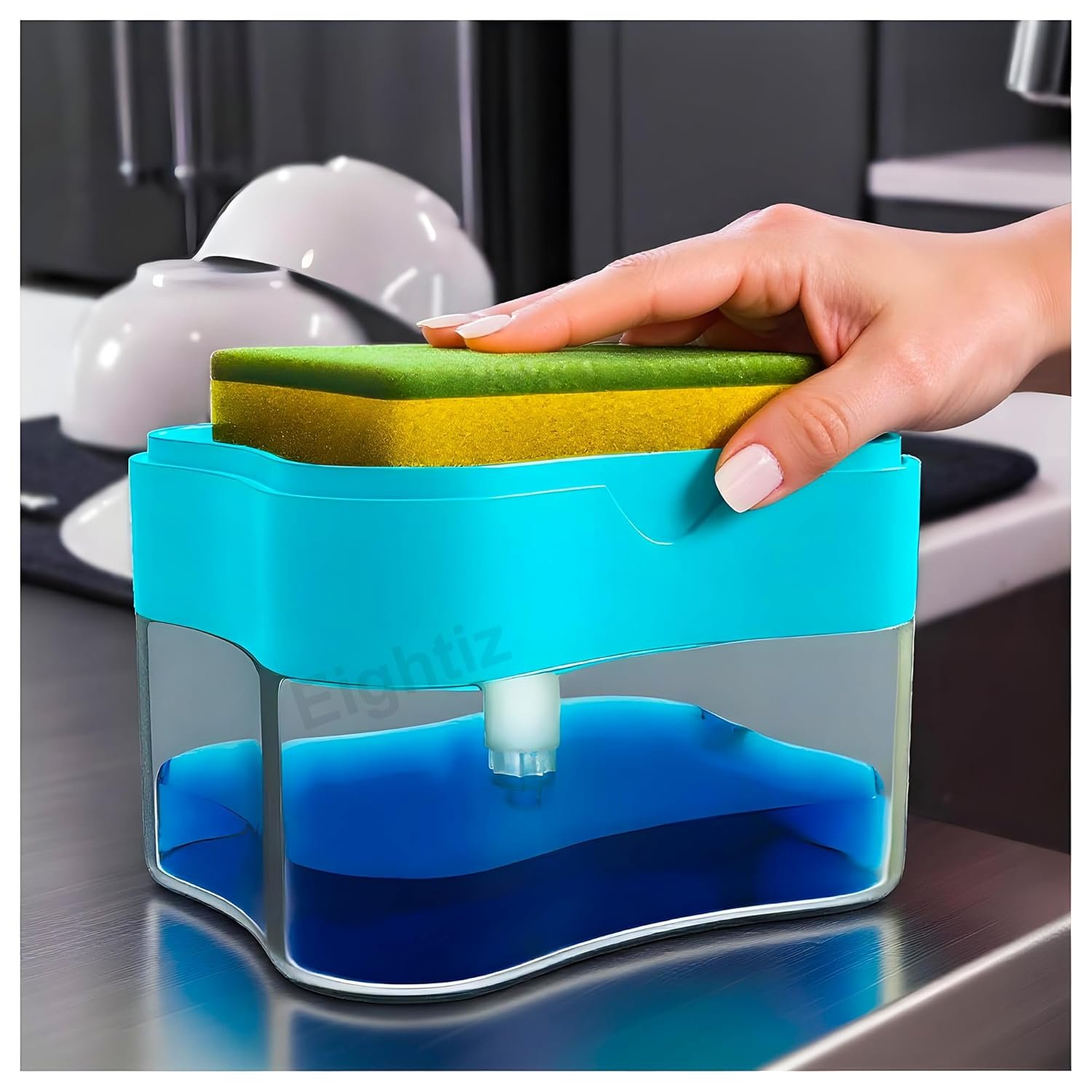Eightiz 2 in 1 Soap Dispenser for Bathroom Accessories Dishwasher Liquid Holder Liquid Dispenser Pump 400 ML with Sponge Holder Kitchen Sink Accessories Items (Multi-Color)