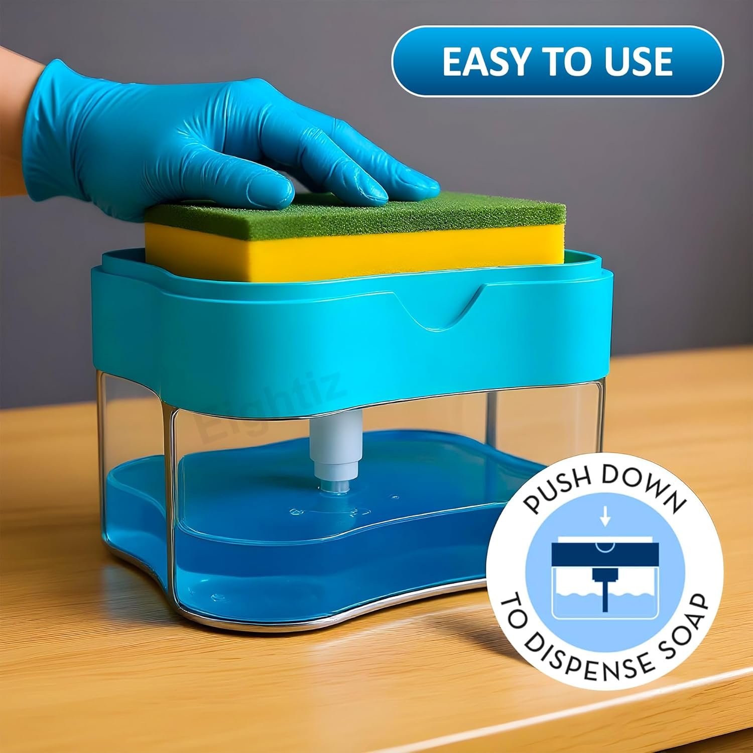 Eightiz 2 in 1 Soap Dispenser for Bathroom Dishwasher Liquid Holder Dispenser with Sponge Holder Kitchen Sink Accessories Items (Multi-Color)