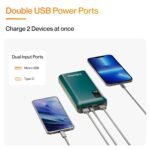 ElevOne by Ambrane 20000mAh Power Bank with 10.5W Fast Charging, Dual USB Output, Made in India, Multi-Layer Protection, Wide Compatibility, Stylish & Compact Design + Type-C Cable (Rapid 20, Green)