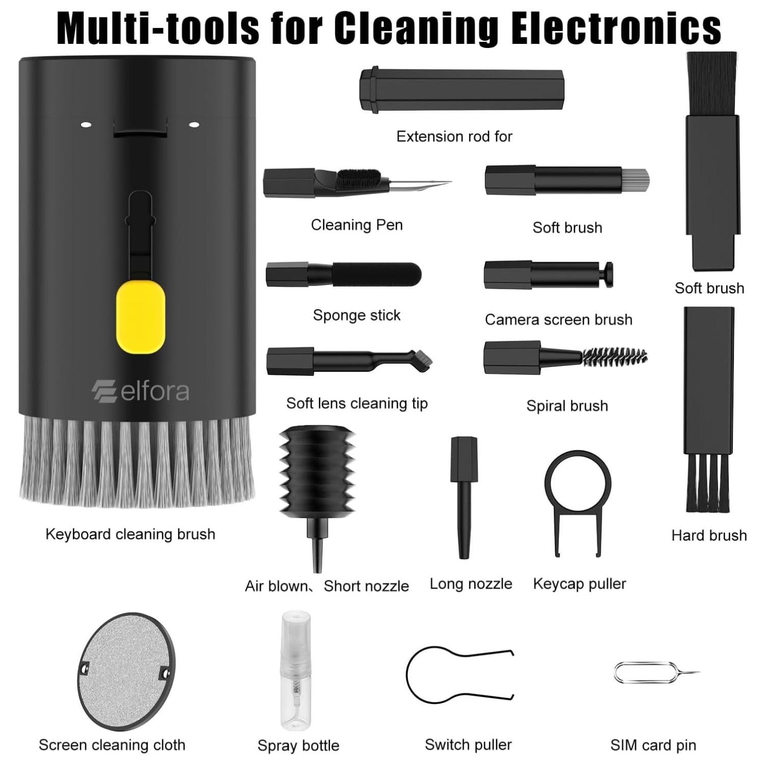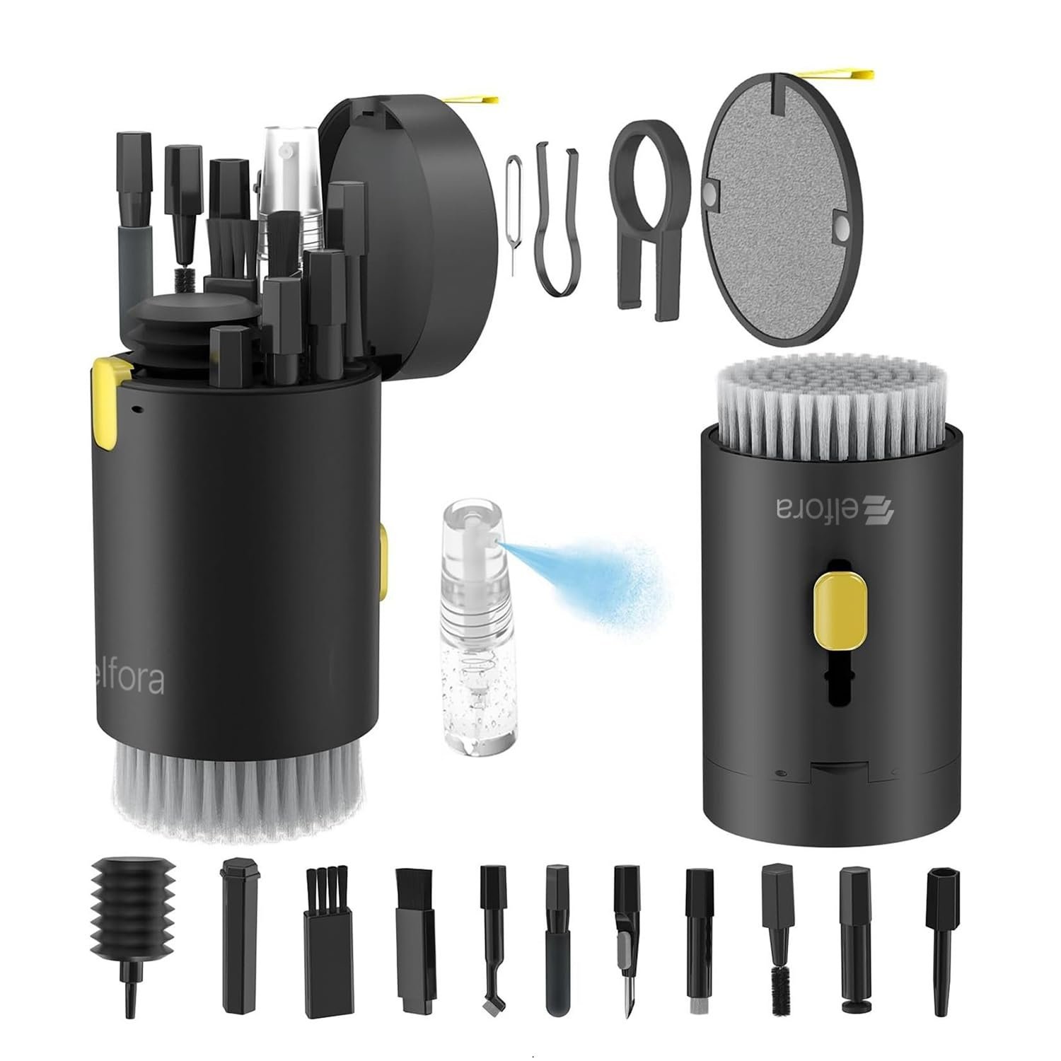 Elfora Electronic 20 in 1 Cleaning Kit| Multifunction Tool Kit with Screen Cleaning Cloth, Brush, Key Puller, Spray Bottle| Cleaner Kit for PC, Laptop, iPhone, iPad, MacBook, Airpod & Keyboard(Black)