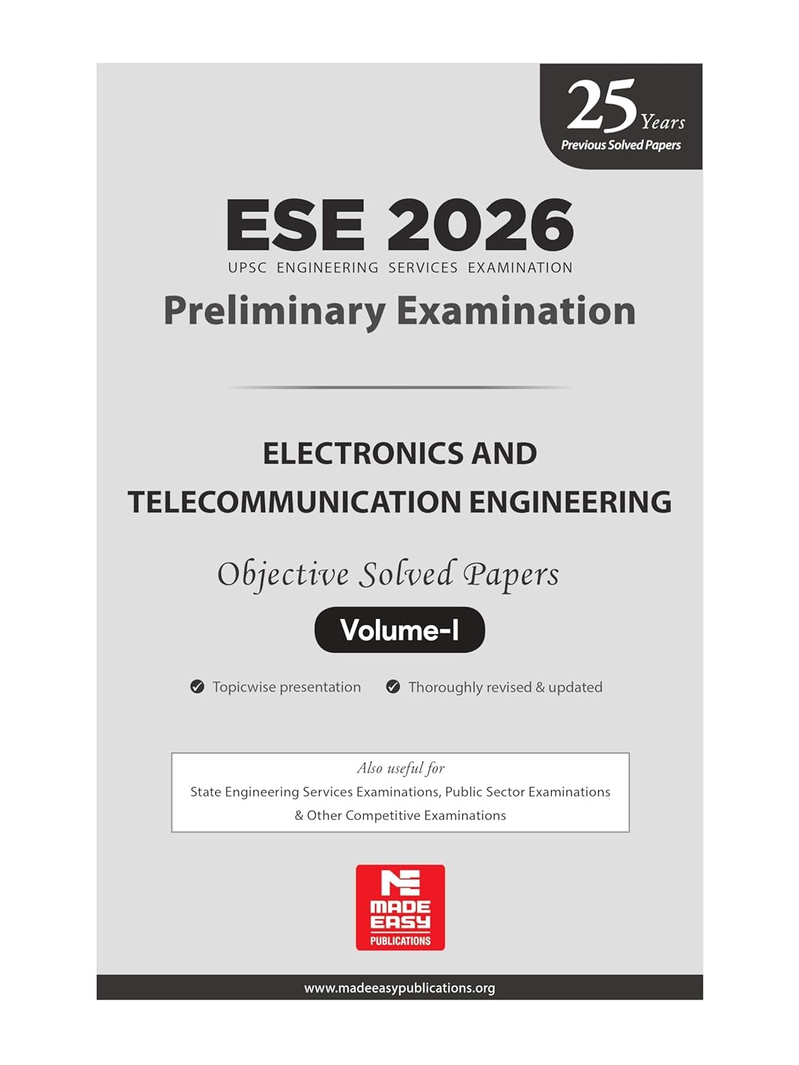 ESE 2026 : Preliminary Exam: Electronics & Telecom (E&T) Engineering Volume-I | Chapterwise & Topicwise Objective Solved Papers | 25 Years Solved PYQs … Examination | Fully Solved | By Made Easy