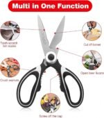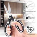 Strong and Durable & Easy To Clean and Maintain: stainless kitchen shears ,the blades have designed grooves to prevent slip when cutting food, making it easier to cut food, Blade Edge Thicker,excellent corrosion resistance, heat resistance, The high quality stainless steel won’t get rusty and Handle with rivet reinforcement handle.Tip: Please do not immerse the scissors into the water and please wipe it dry after cleaning..