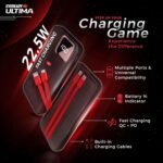 Eveready Ultima Power Bank PB10 with Built-in-Cables 10,000 mAh, 22.5W Fast Charging, Multiple Ports & Universal Compatibility, TypeC Input & Output, Digital Battery Indicator, Overcharging Protection
