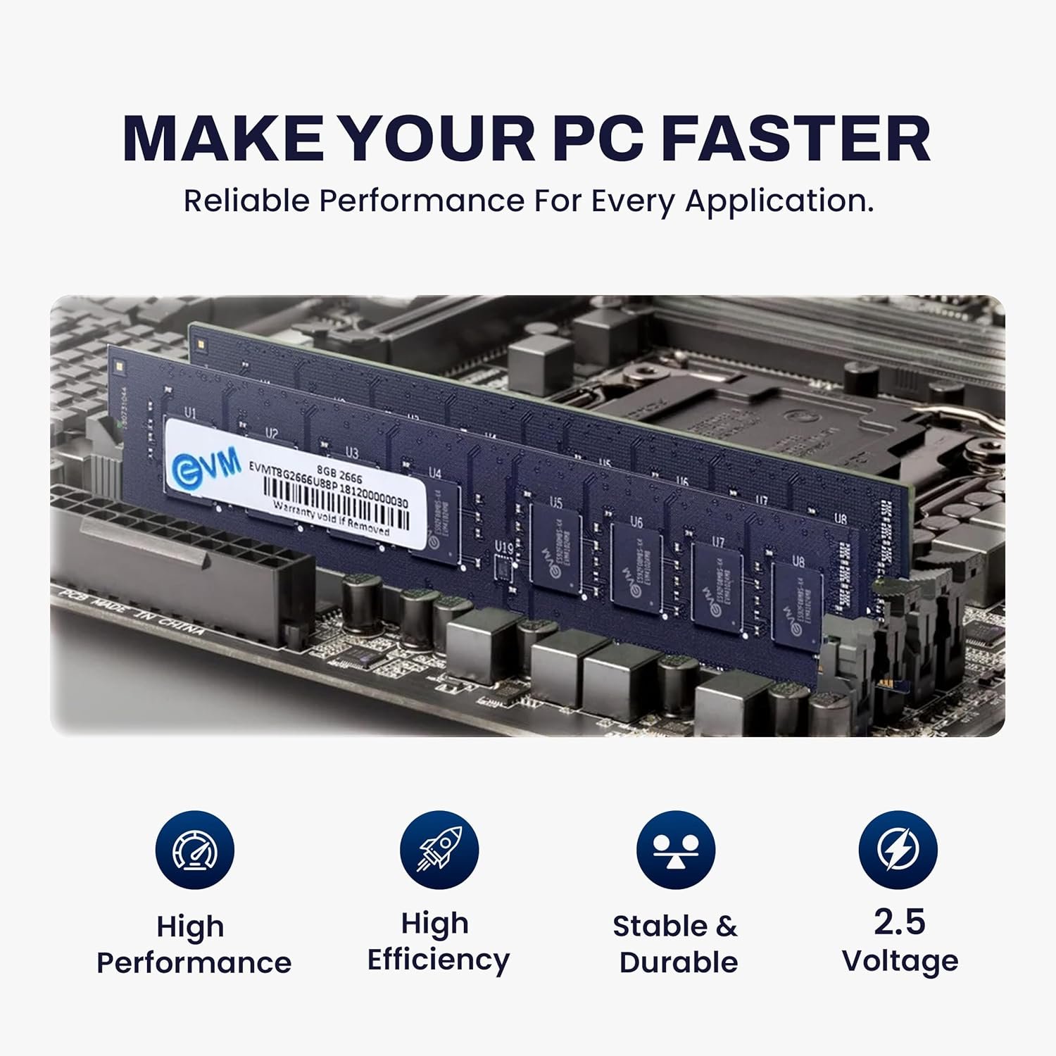 EVM 8GB DDR4 Desktop RAM 2666MHz – Update Your Desktop’s Performance – CL15 Latency – Compatible with Intel, AMD, and Mac Systems – 10 Years Warranty (EVMT8G2666U88P)