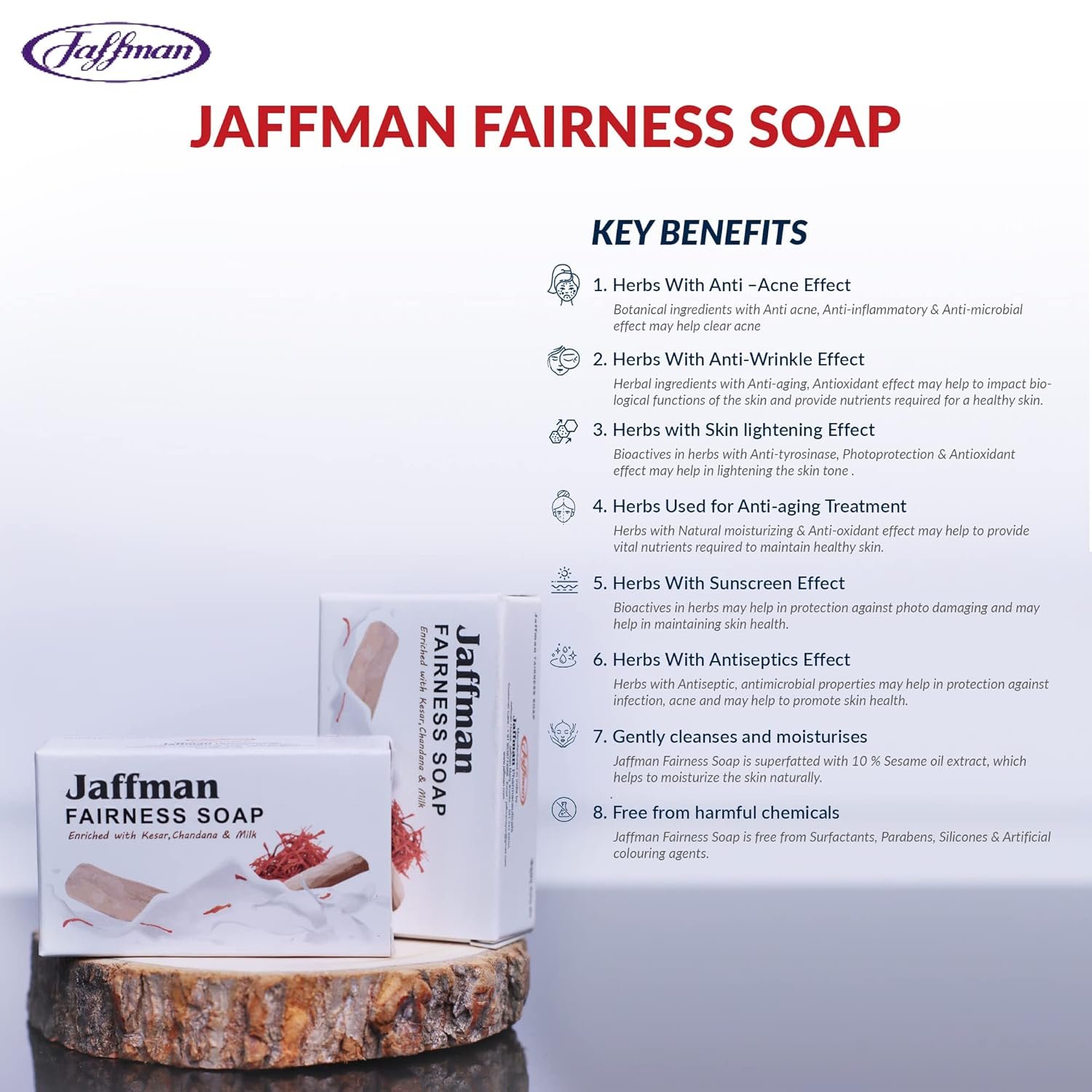 Jaffman Fairness Soap is free from Surfactants, Parabens, Silicones & Artificial colouring agents