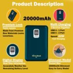 Fire Beat Slimmest 20000mAh Fast Charging Power Bank | 22.5W PD & QC 3.0 | Dual USB, Type-C Input/Output | Portable Charger for Ipone and Android Phones
