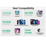 CAPACITY:- 20000 mah power bank , CHARGING SPEED – 22.5 W Fast Charging MULTI CHARGING :-3 Device Charging Simultaneously :- Type C = 1 Port (Input and output) , Type A USB Port :- 2
