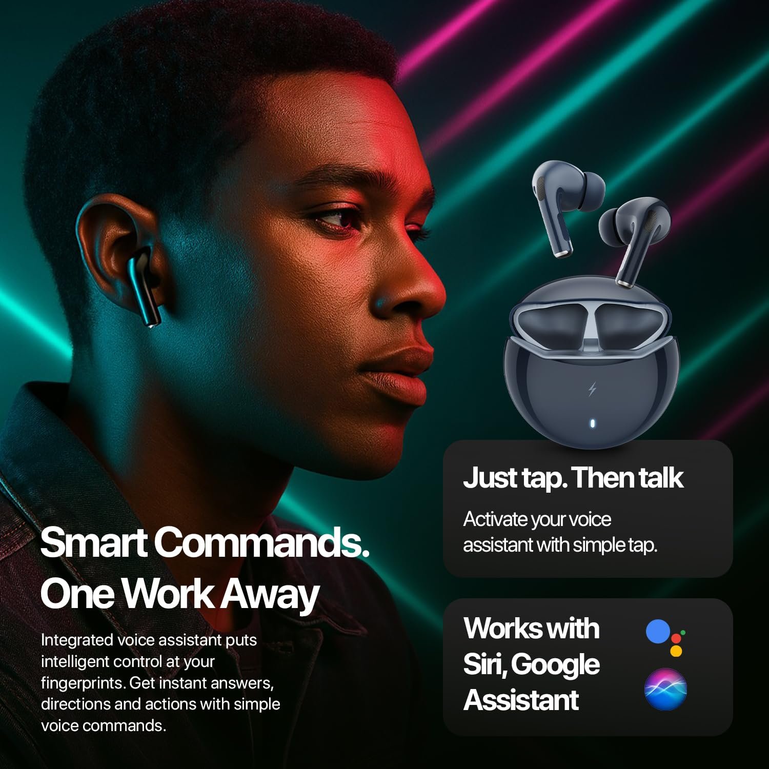 Crystal-Clear Calls with Quad Mic ENC – Stay connected with superior call clarity. Ear buds featuring 4 advanced microphones and Environmental Noise Cancellation, these Bluetooth TWS earbuds capture your voice precisely while blocking out unwanted background noise—perfect for calls, meetings, or voice commands.