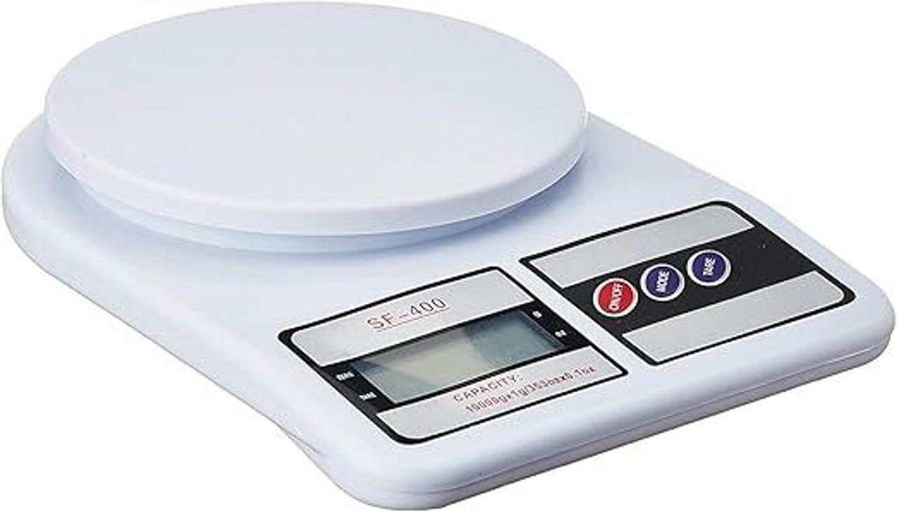 Fluzivena SF-400 Digital Kitchen Scale, White, LCD Display, 10000g Capacity, Electronic Food Weight Measurement