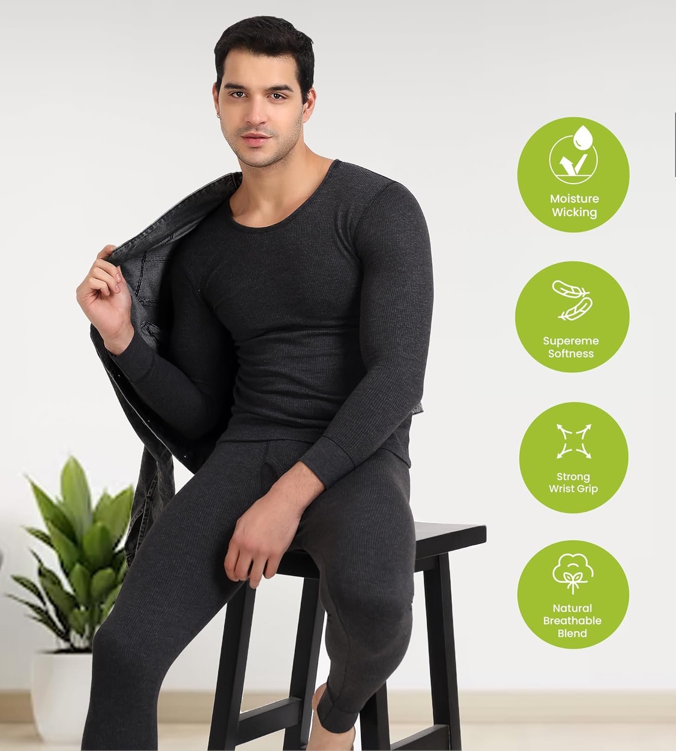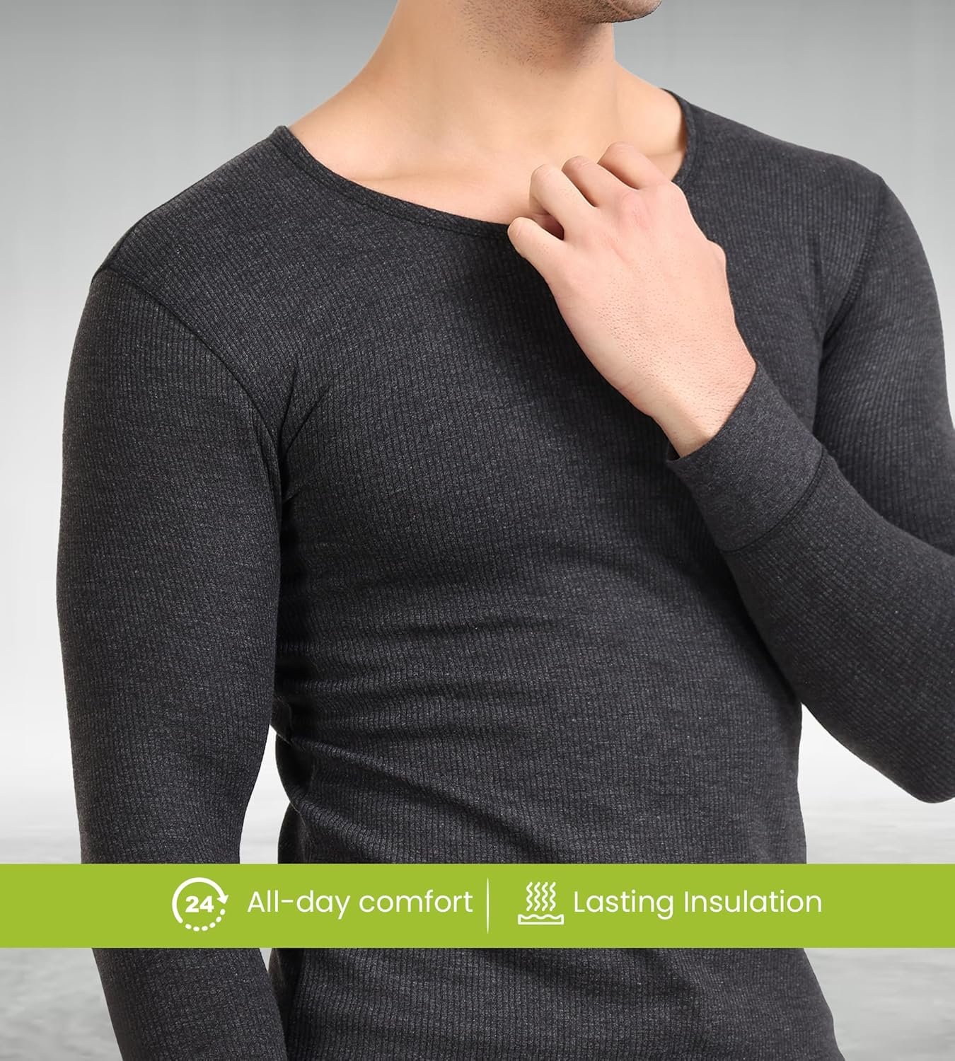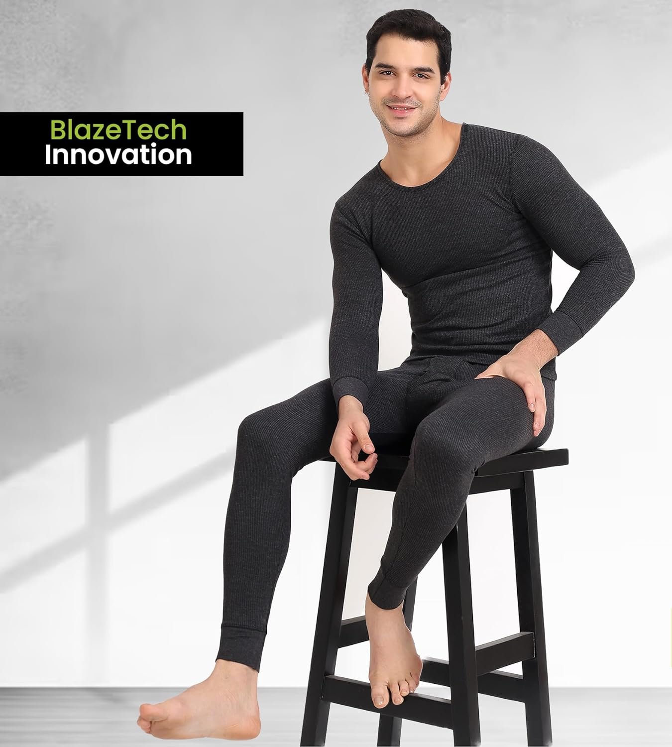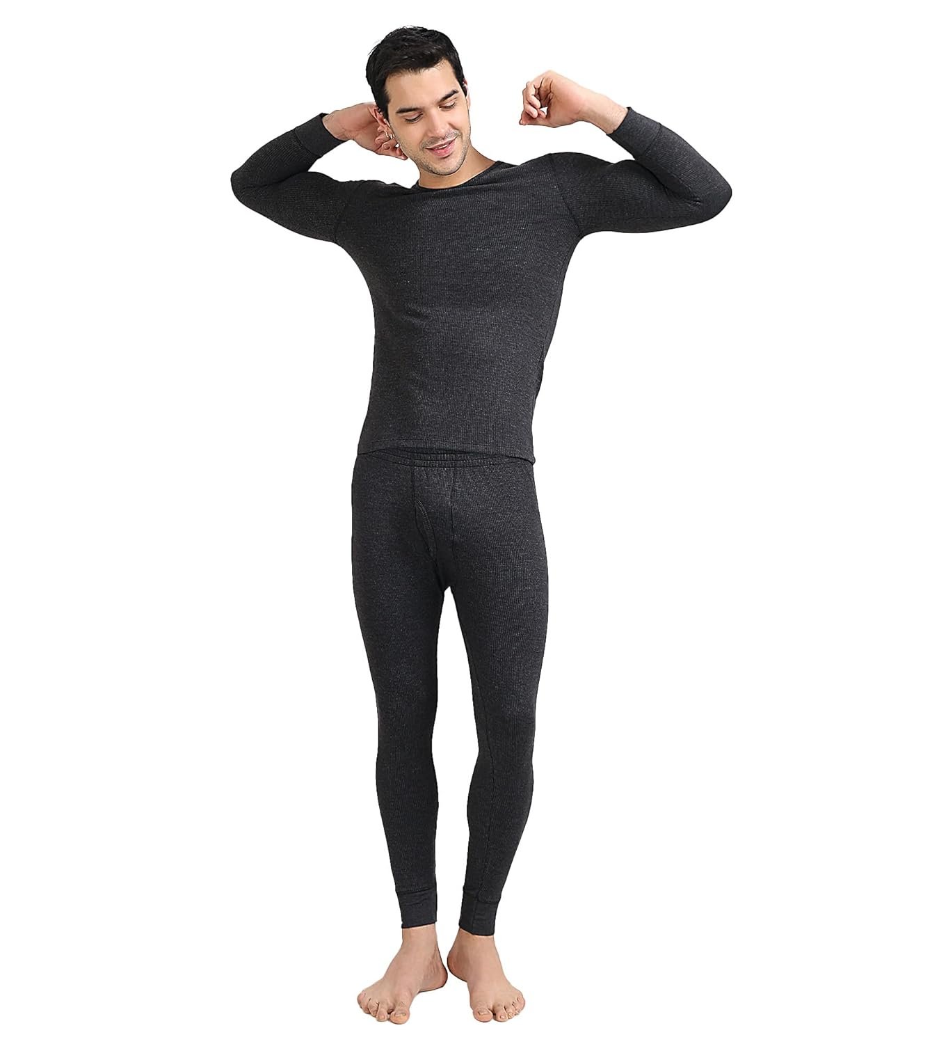 Freecultr Men’s Thermal Set | Antibacterial, Skin Friendly with Pure Cotton Blazetech Heat Retention | Slim Fit Solid Thermal Set Full Sleeve