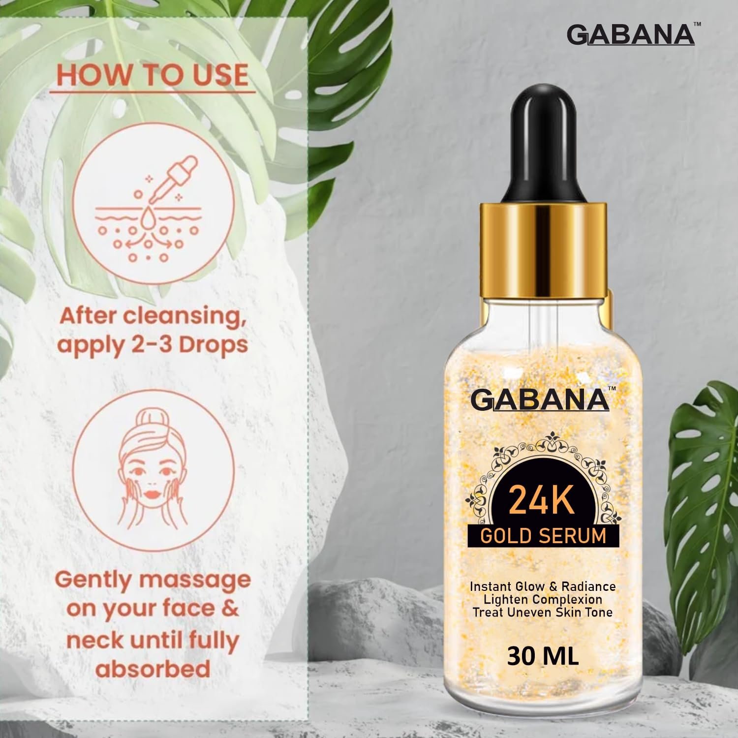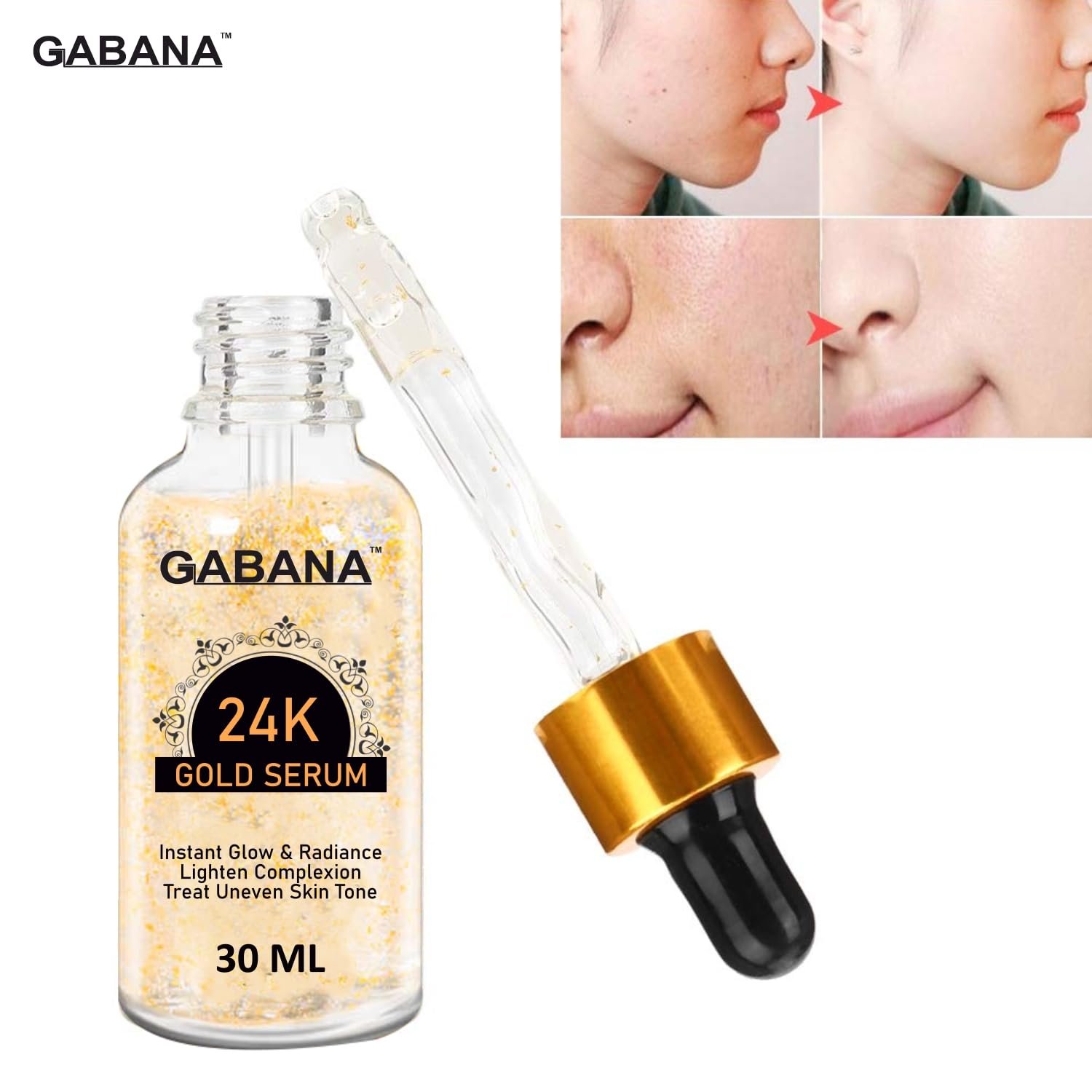 GABANA 24K Gold Serum for Men and Women (Pack of 1, 30 ml)|Serum for Glowing Skin Serum for Acne and Dark Spots Serum for Instant Glow and Treats Uneven Skin Serum for Face Brightening Face Serum|