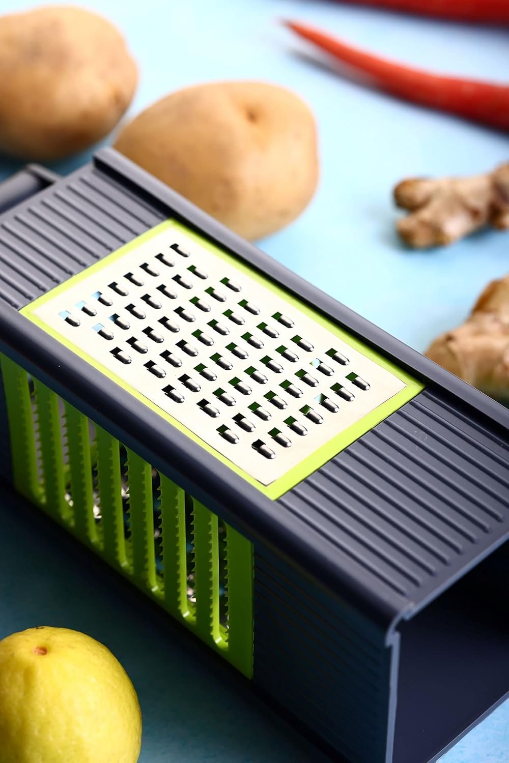 The smart design of this slicer grater makes it an ideal accessory for a modern kitchen.