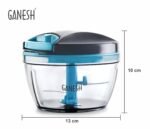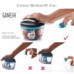 GANESH Wonder Chopper is Ideal for chopping and cutting onion, vegetables, dry fruits, nuts, herbs, etc. It has Sturdy Stainless Steel Blades for quick and efficient chopping. It provide Tear Free Chopping for Onions, Garlic, Chilly, Etc. Make it instant-Paste, Chopping, Gravy, Salad, Chutney, Food Preparations, etc. using Wonder Chopper. Easy to Clean and Disassemble. Wonder Chopper is made From Food grade BPA free Virgin Material. No Electricity required. Four Safe lid locks ensures Safety during use. It has Non-skid base. It gives about More Than 380 Knife Cuts in less than 20 Sec. It Cuts and Chops with easy hand pull Cord function.Use and Care : Take the Chopper Container and Fix blade holder in the Centre. Cut the ingredient in to appropriate size and add evenly around the blade. Don’t Fill the bowl more than 3/4 of bowl Capacity. Close the Container with Chopper lid and Make Sure it is locked Securely. Pull handle Parallel to bowl. Sharp blades handle with Care. Keep out of the reach of Children.