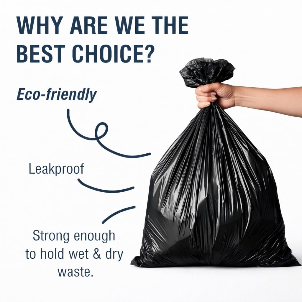 Hayan Enterprise ! Offers Garbage Bags To Help You Maintain Cleanliness And Hygiene In Your House, Office And Surroundings. These Garbage Bags Make Clean-Up And Garbage Disposal A Hassle-Free Task While Being Easy On The Environment! Line Them Up In Your Bedroom Or Bathroom Dustbins Or Use Them To Segregate Dry And Wet Waste In The Kitchen. Effectively Clear Out Messy Trash Like Baby Diapers And Kitty Litter! Handy At Offices Or Hotels, They Re Useful For Getting Rid Of Leftover Party Plates And Garbage As Well. They Come With A Detachable Tie-Tape Which Lets You Neatly Tie Up The Bag, Making It Easier To Carry Out After Use. These Medium-Sized Bags Easily Fit Any Normal Dustbins. They Are Available In Black Colour In A Pack Of 6 Rolls, And Each Roll Contains 30 Bags For Your Convenience.