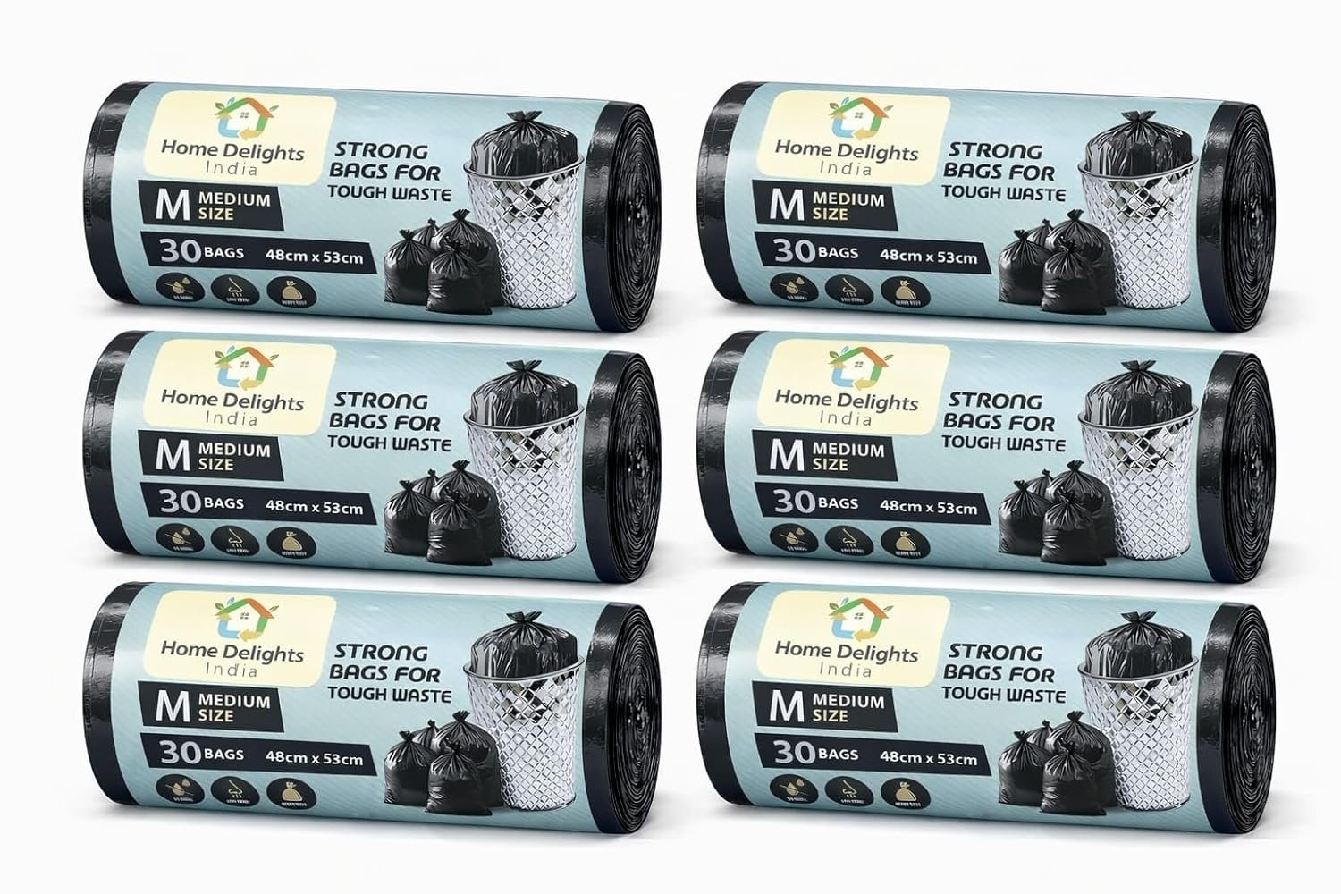 Garbage Bags | Medium | 180 Counts | 30 Bags X 6 Rolls | 19 X 21 Inches | For Dry & Wet Waste | Black (Medium)