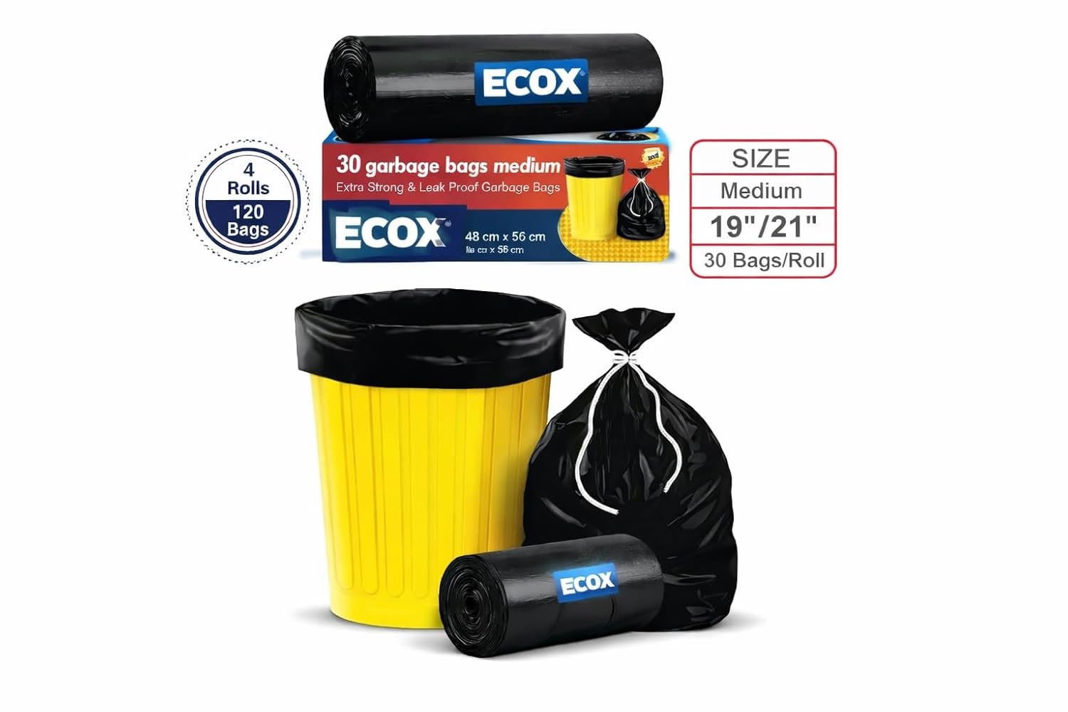 Garbage Bags | Medium 19 X 21 Inches | 120 Bags (30 Bags X 4 Rolls) | Dustbin Bag/Trash Bag | (Black) – Medium Size, Leak Resistant, Perforated Rolls for Kitchen, Bathroom and Office Use
