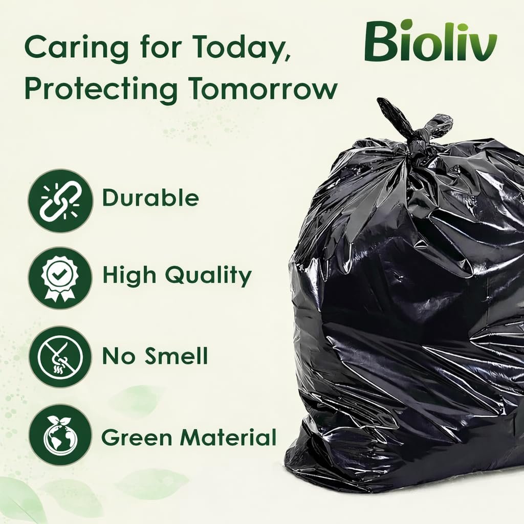 DIMENSIONS: Each bag measures 48 cms x 53 cms (19 x 21 inches) with 20-litre capacity, suitable for medium-sized bins in kitchens, bathrooms, and offices