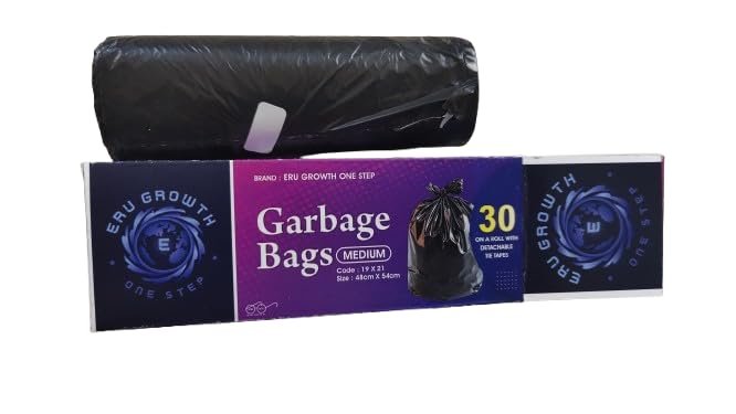 Keep your space clean and organised with ERU GROWTH ONE STEP medium-sized garbage bags. Each roll contains 30 durable black bags designed for everyday household waste management. These convenient bags are perfect for kitchen bins, office waste baskets, and general household clean-up tasks. The medium size offers ample capacity for regular waste disposal needs while maintaining ease of handling. The black colour provides discretion and helps conceal contents effectively. These bags feature a practical design that makes them easy to separate from the roll and simple to fit into most standard-sized bins. The robust construction helps prevent tears and leaks during use, making waste disposal more hygienic and hassle-free. Whether you’re cleaning up after a family meal or managing daily household waste, these garbage bags offer reliable performance for your waste management needs.